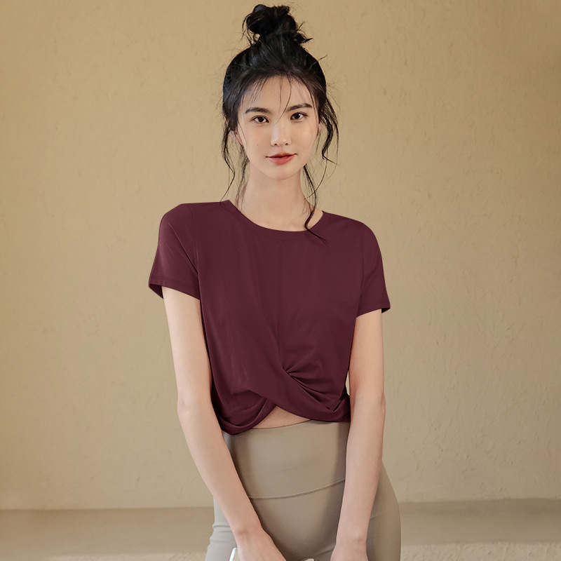 요가 의류 여름 스포츠 반팔 여성용 얇은 티셔츠 실행 사이버 인기 슬림핏 슬리밍 우아한 섹시한 피트니스 탑
