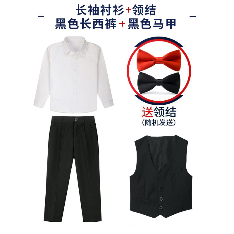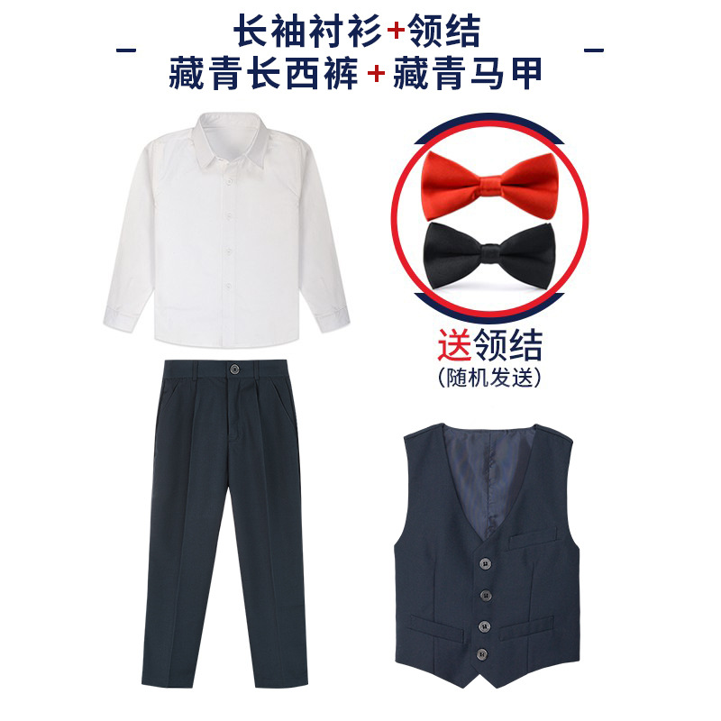 소년 네이비 조끼 피아노 영국 학생 시계 세트 세트 흰색 셔츠 긴 소매 검은 바지 세트스토어 가기
