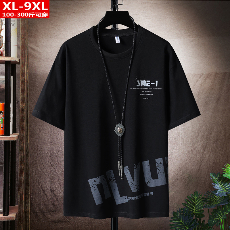 여름 트렌디 홍콩 스타일 남성용 프린트 반팔 티셔츠 뚱뚱한 남성용 초대형 루즈한 면 반팔 티셔츠스토어 가기