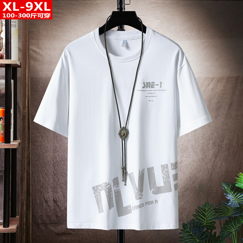여름 트렌디 홍콩 스타일 남성용 프린트 반팔 티셔츠 뚱뚱한 남성용 초대형 루즈한 면 반팔 티셔츠