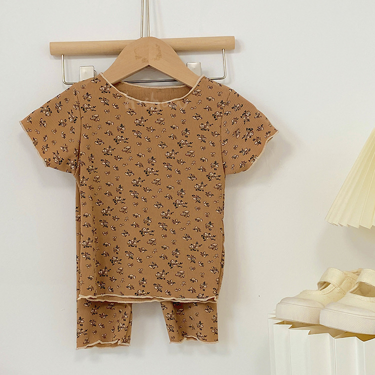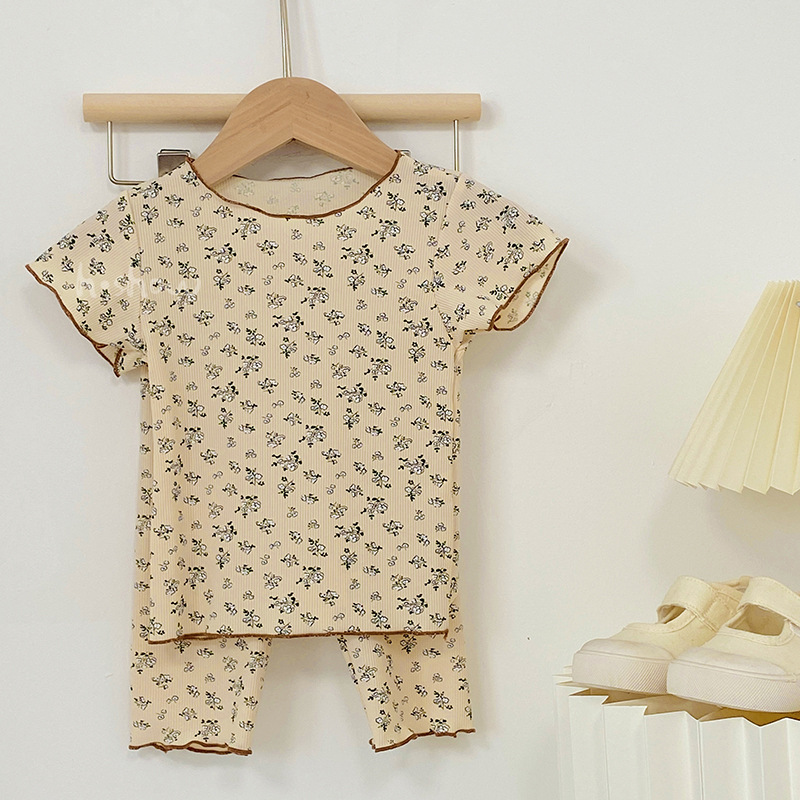 2023 여름 새로운 여자 반팔 꽃 무늬 세트 아기 여름 투피스 웨스턴 스타일 한국 잠옷 0034스토어 가기