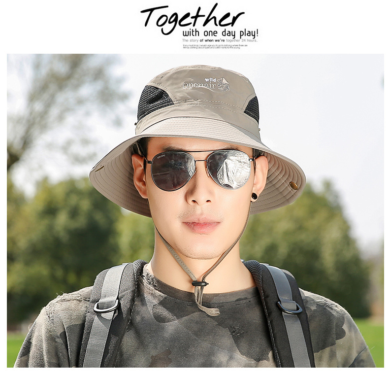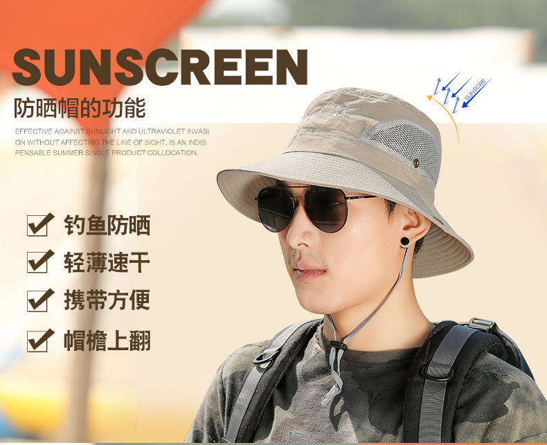 남자 모자 여름 통기성 어부 모자 차양 모자 여행 등산 야외 분지 모자 비치 사이클링 태양 그물 모자스토어 가기