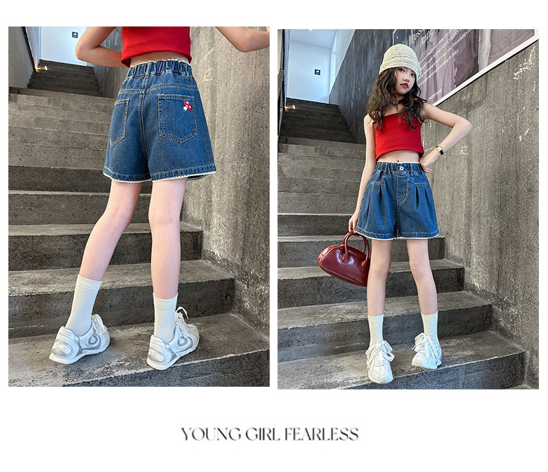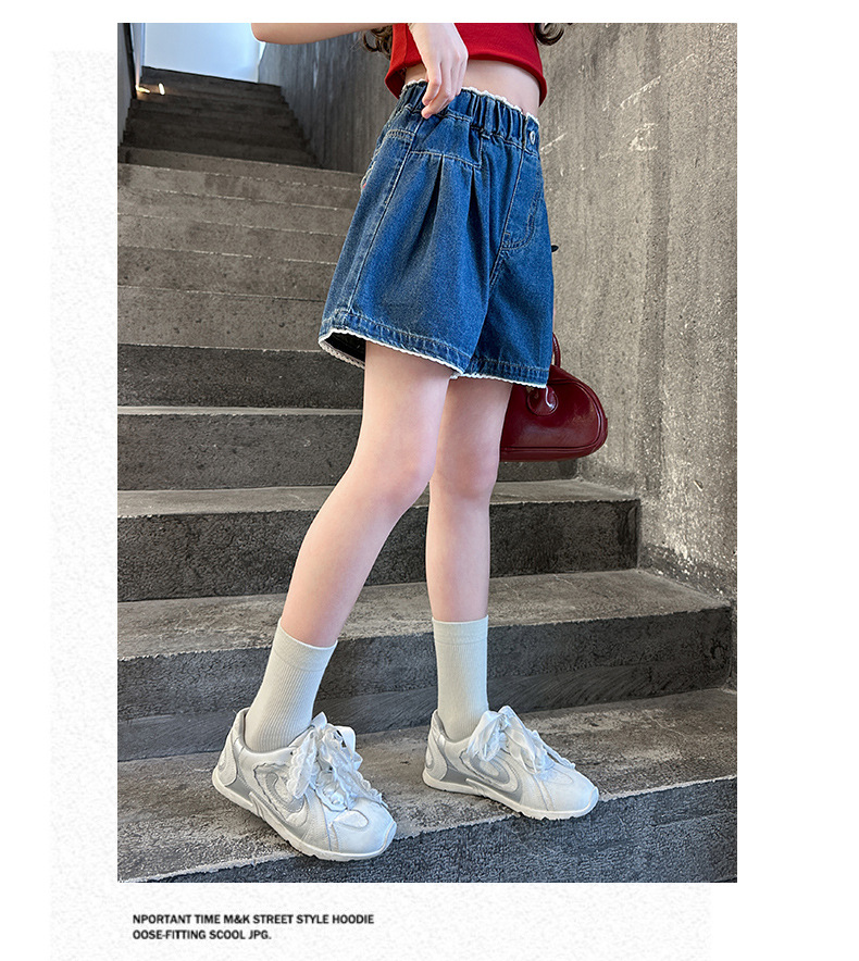소녀 청바지 여름 외부 착용 2024 새로운 어린이 올 매치 바지 소녀 여름 얇은 핫 바지