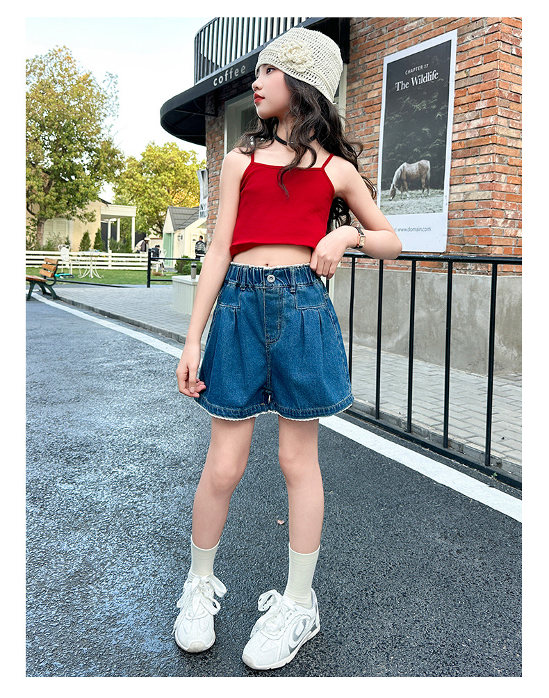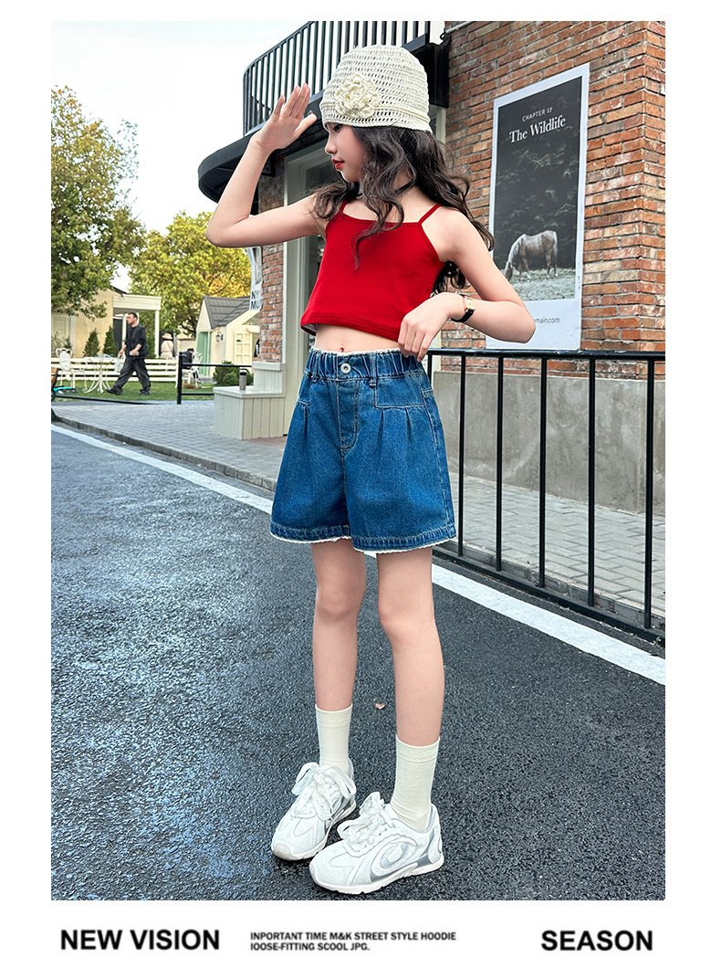 소녀 청바지 여름 외부 착용 2024 새로운 어린이 올 매치 바지 소녀 여름 얇은 핫 바지스토어 가기