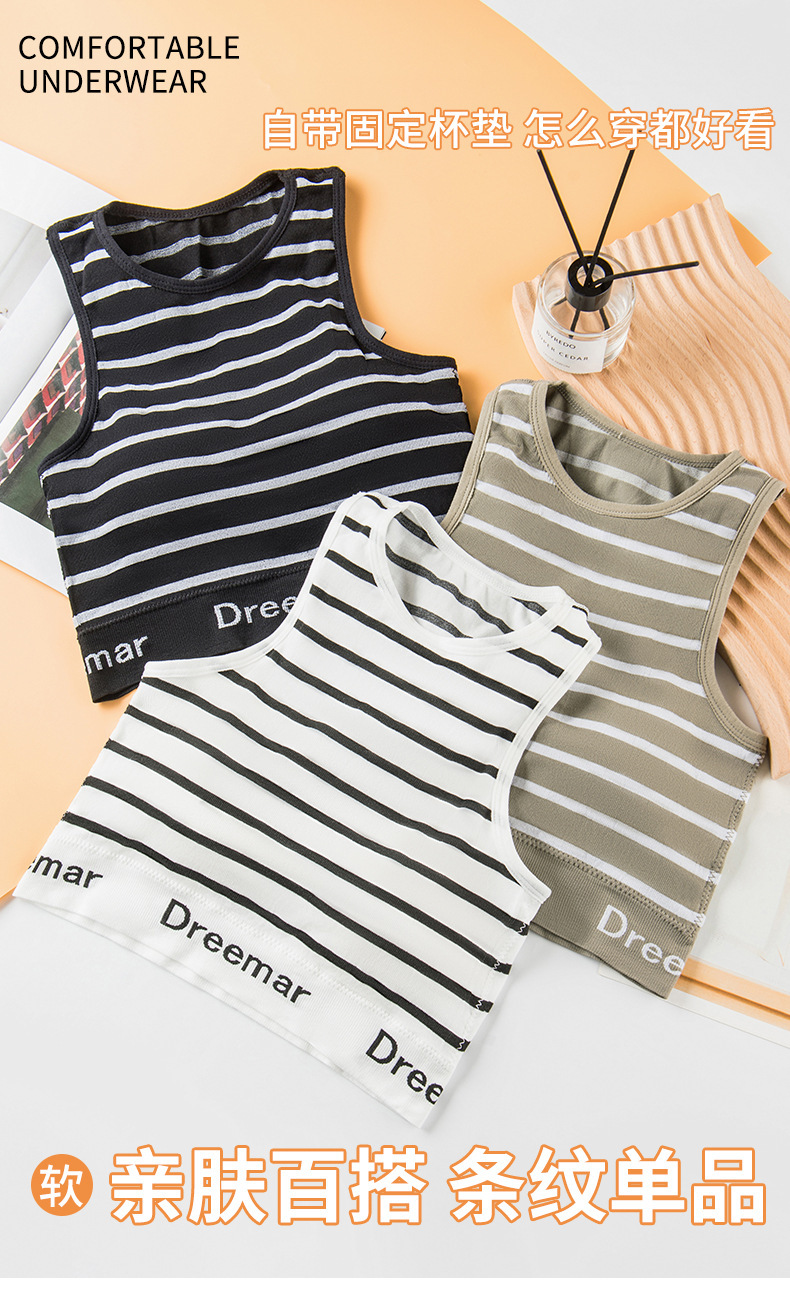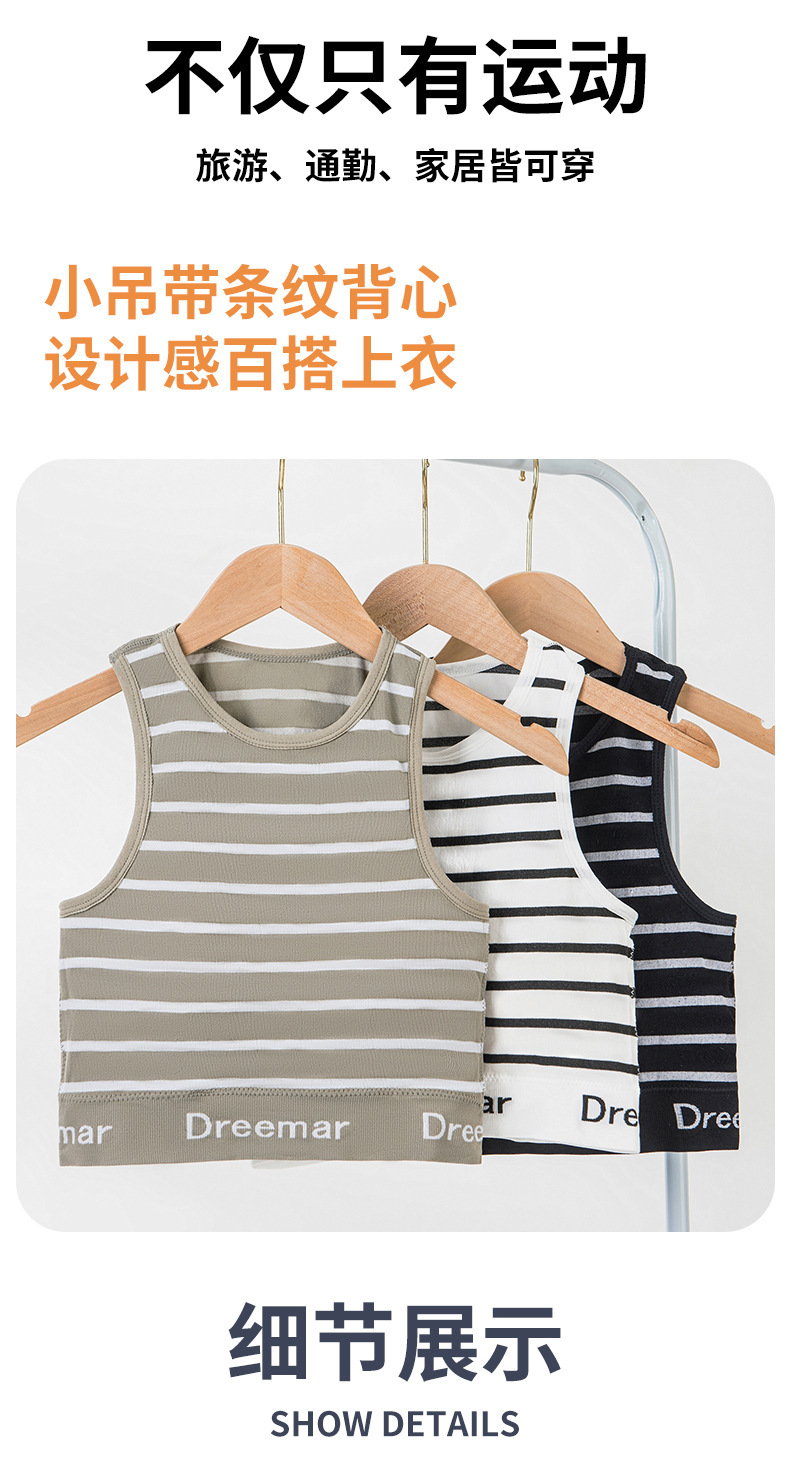 스트라이프 스포츠 캐미솔 고정 컵 외부 착용 내부 착용 가슴 패드 포장 가슴 개더링 스틸 링베이스 포장 여성스토어 가기