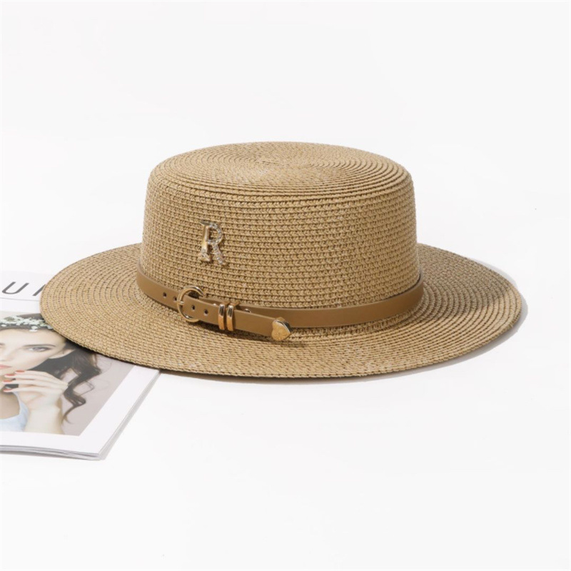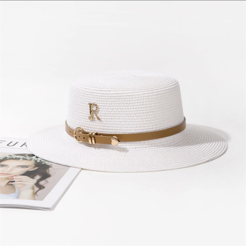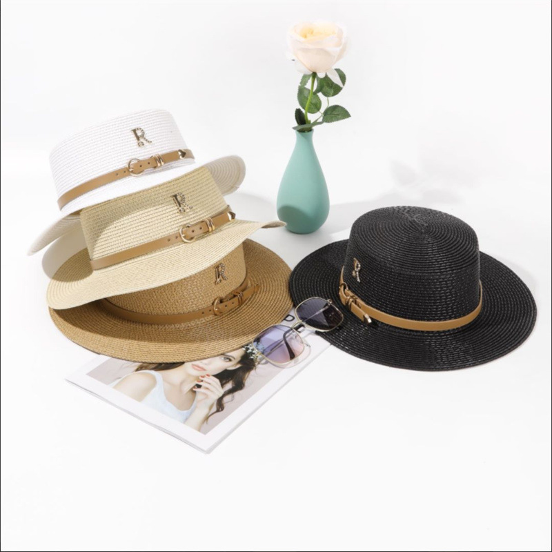 밀짚 모자 여자의 여름 방학 해변 라인 석 편지 R 벨트 개인화 된 영국 복고풍 플랫 탑 차양 멋진 모자