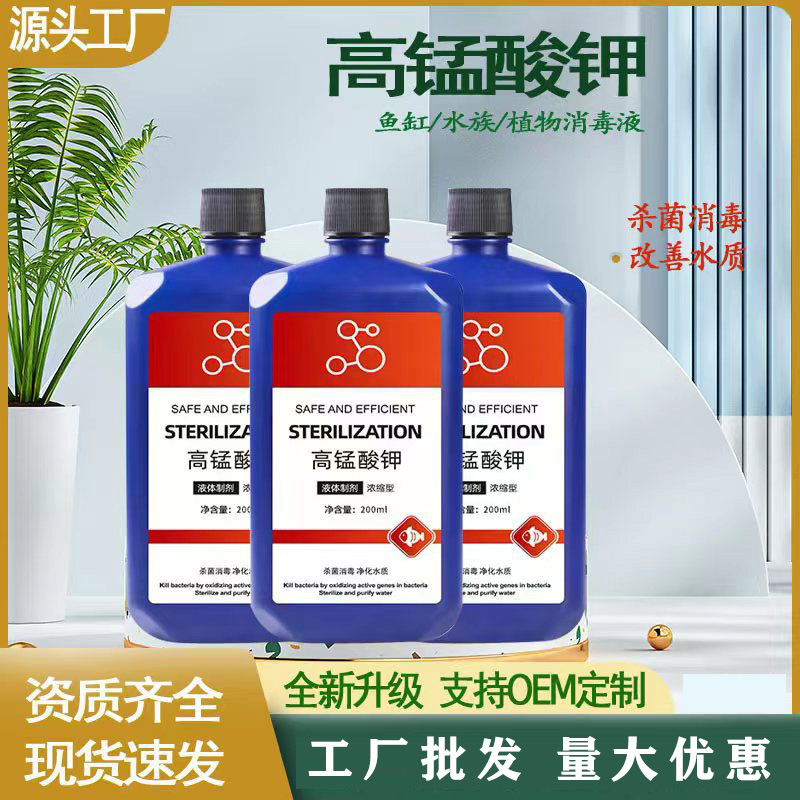 과망간산 칼륨 용액 200ml 수족관 식물 농장 소독제 물고기 용 과망간산 칼륨 살균수