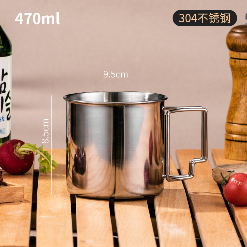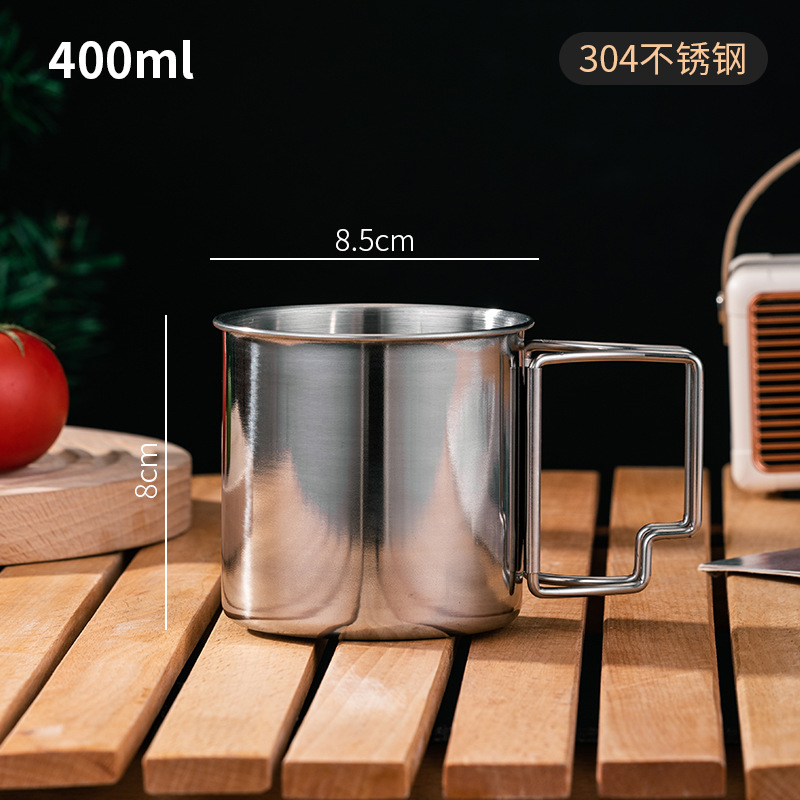 캠핑 입 컵 304 스테인레스 스틸 야외 물 컵 휴대용 접이식 손잡이 등산 피크닉 차 항아리 컵