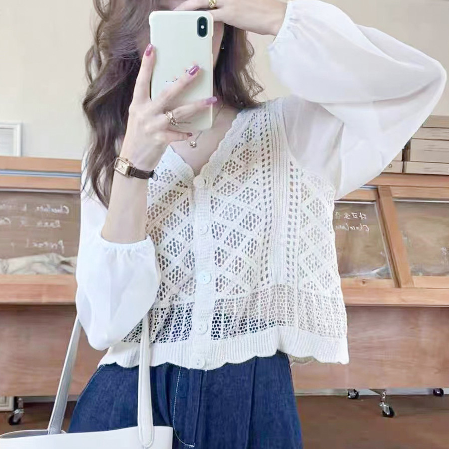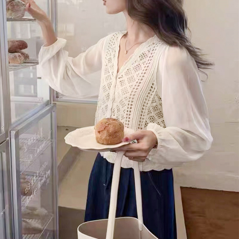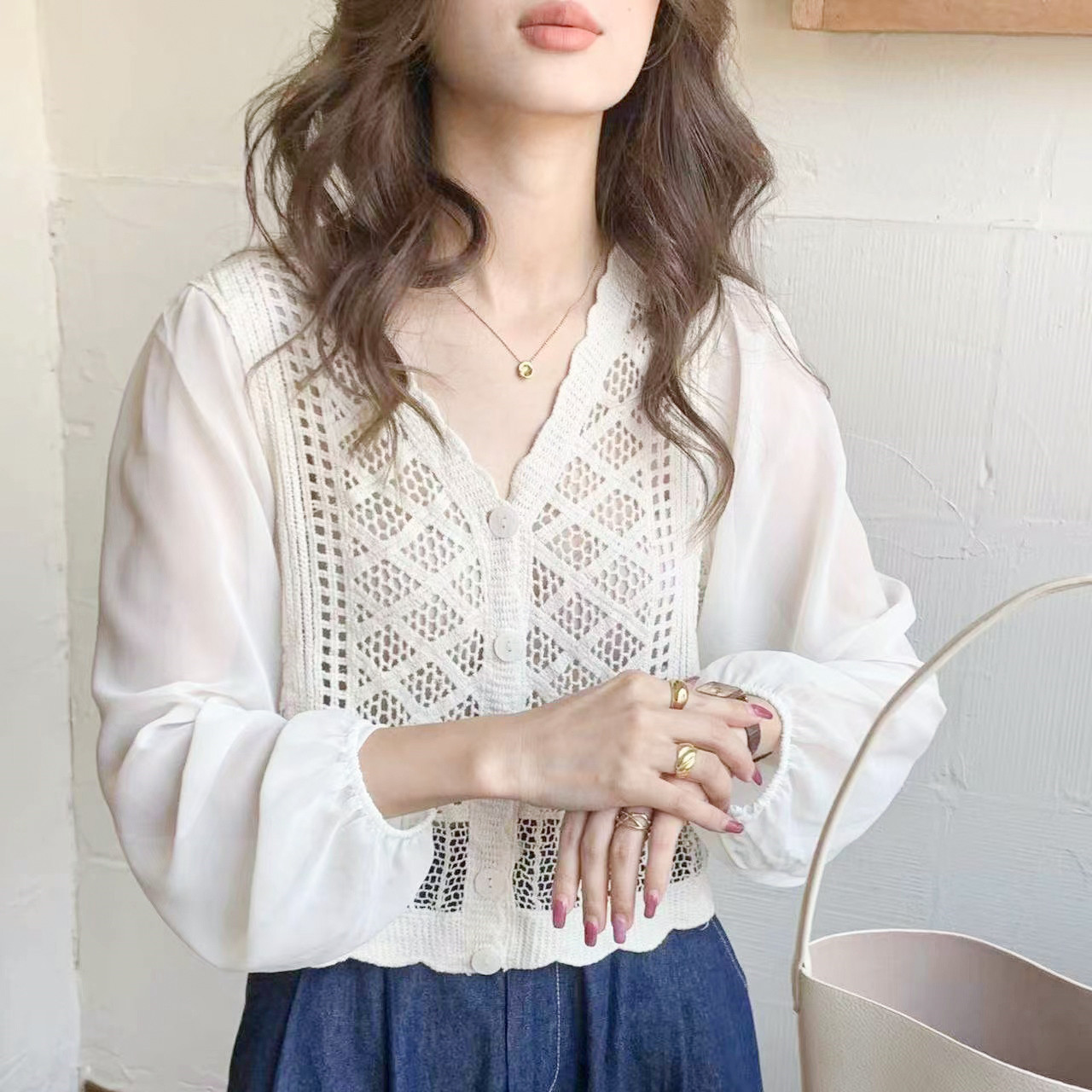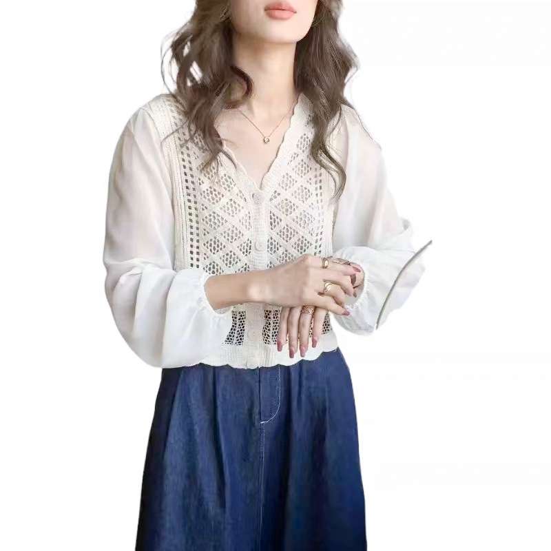 쉬폰 셔츠 여성용 봄과 가을 새로운 여성용 자수 비즈 스티칭 스커트 작은 셔츠 독특한 시크 탑스토어 가기