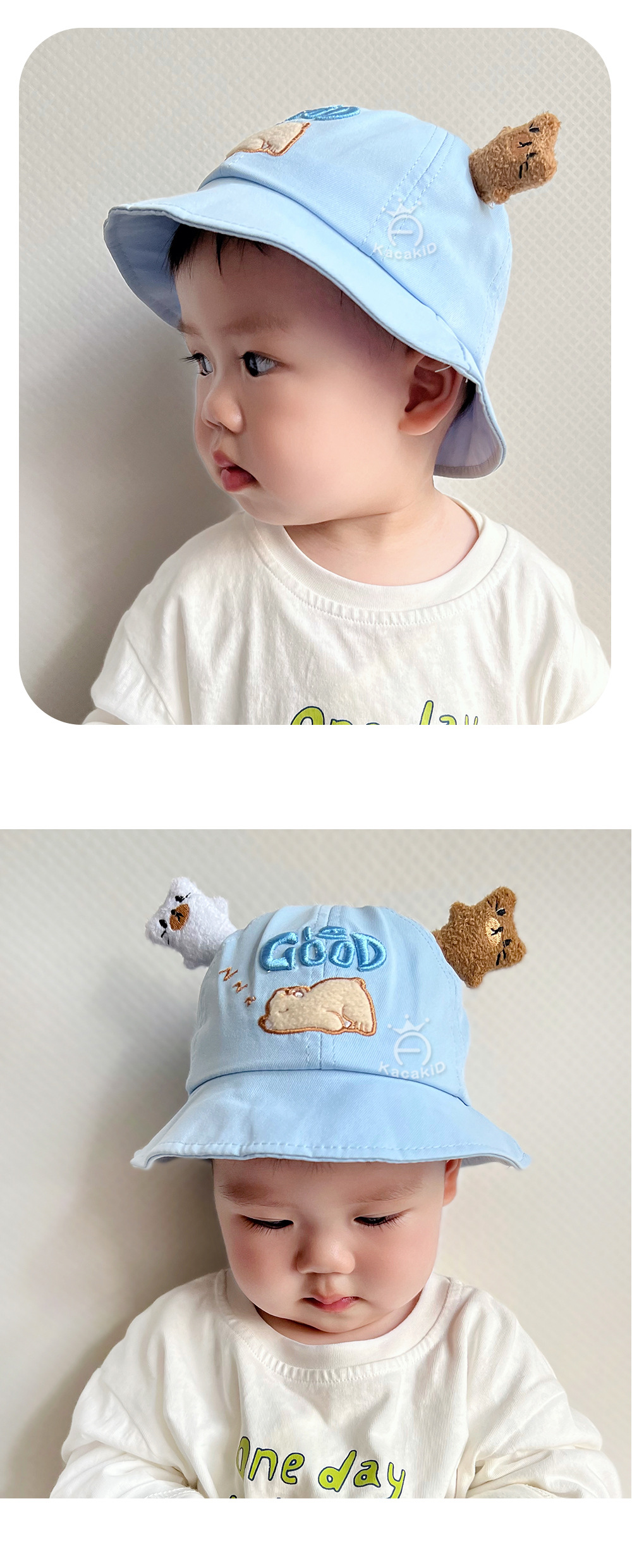 도매 봄과 여름 어린이 모자 아기 만화 편지 소년과 소녀를위한 Goog 곰 태양 모자 아기 자외선 차단제 분지 모자 2131스토어 가기