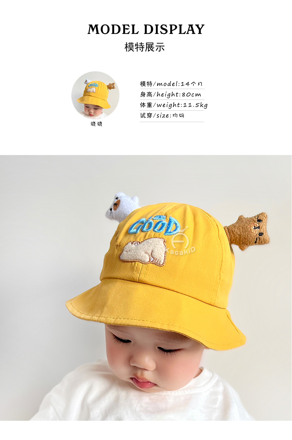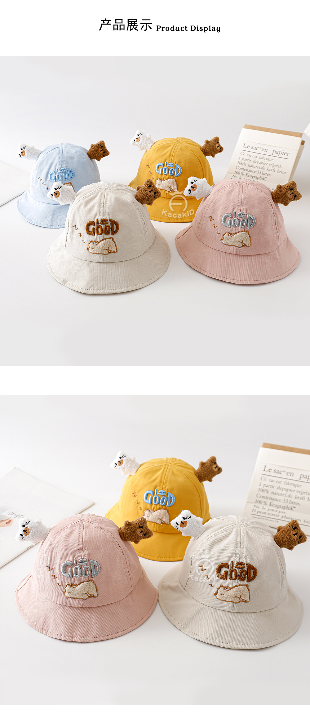 도매 봄과 여름 어린이 모자 아기 만화 편지 소년과 소녀를위한 Goog 곰 태양 모자 아기 자외선 차단제 분지 모자 2131