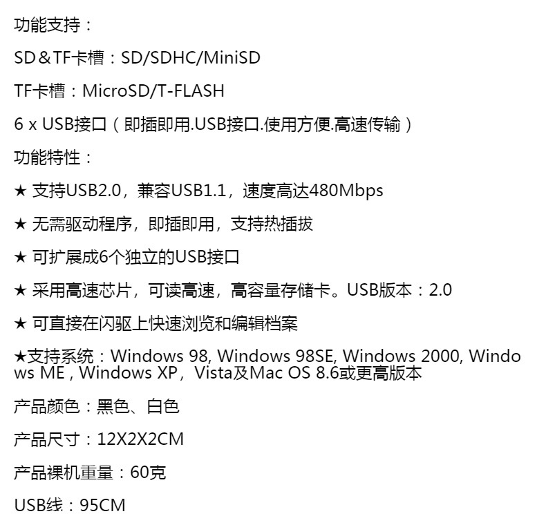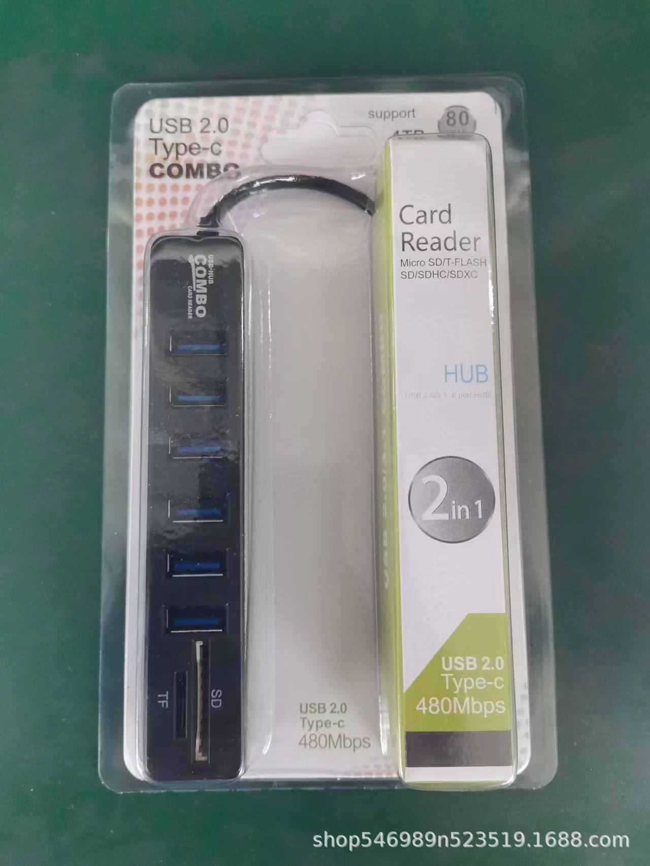 다기능 도킹 스테이션 7-in-one 허브 카드 리더기 USB2.0 멀티 포트 데스크탑 1-6 확장 독