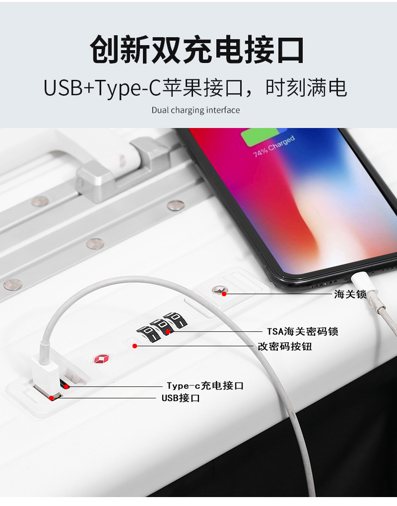 국경 대외 무역 다기능 가방 24 알루미늄 프레임 상자 USB 이중 충전 인터페이스 전면 개방 컴퓨터 창고 탑승 케이스 20