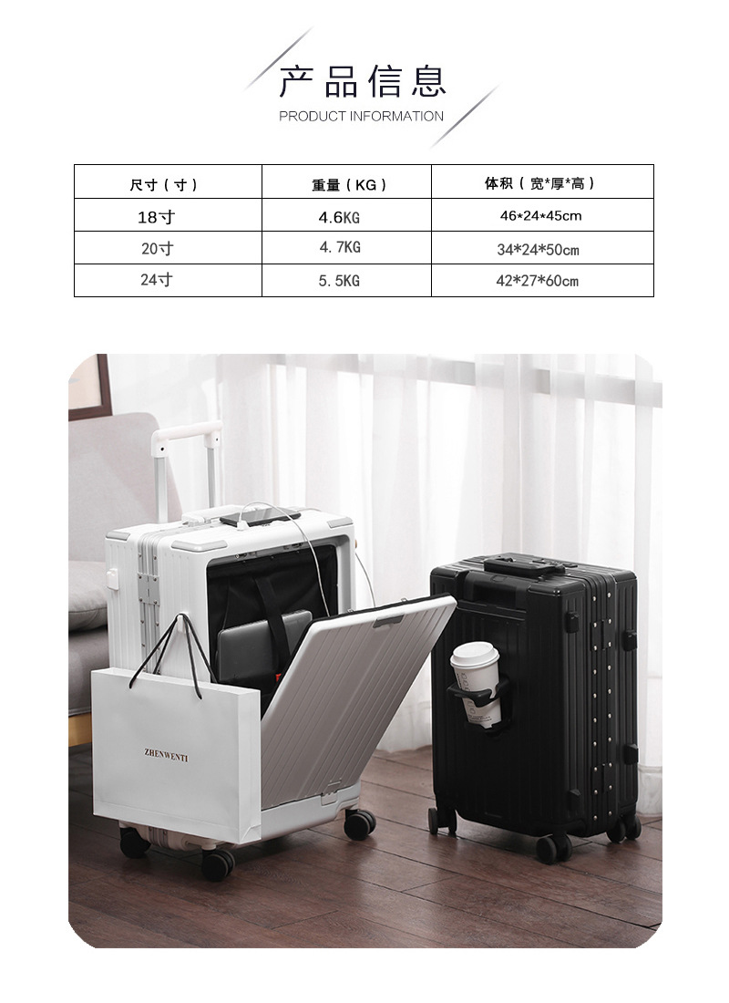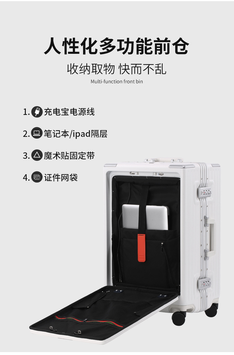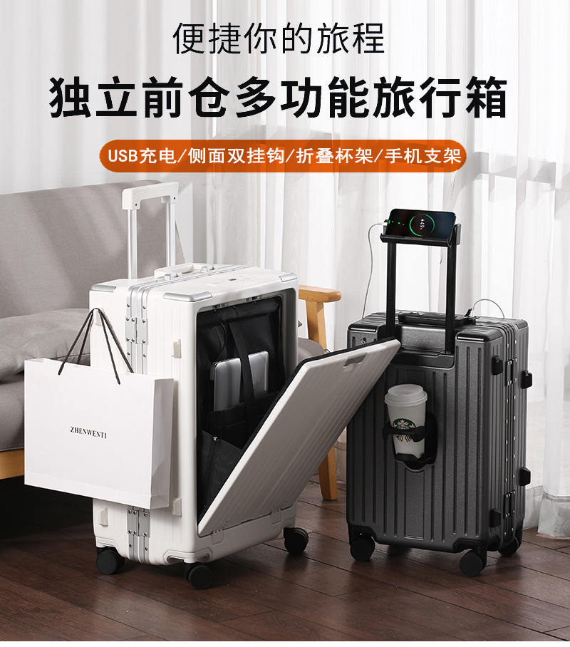 국경 대외 무역 다기능 가방 24 알루미늄 프레임 상자 USB 이중 충전 인터페이스 전면 개방 컴퓨터 창고 탑승 케이스 20스토어 가기