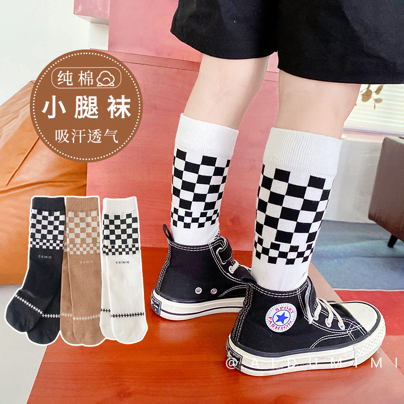 2023 어린이 양말 봄과 가을 바둑판 스타킹 격자 무늬 높은 스타킹 소년과 소녀 아기 양말 도매 세대스토어 가기
