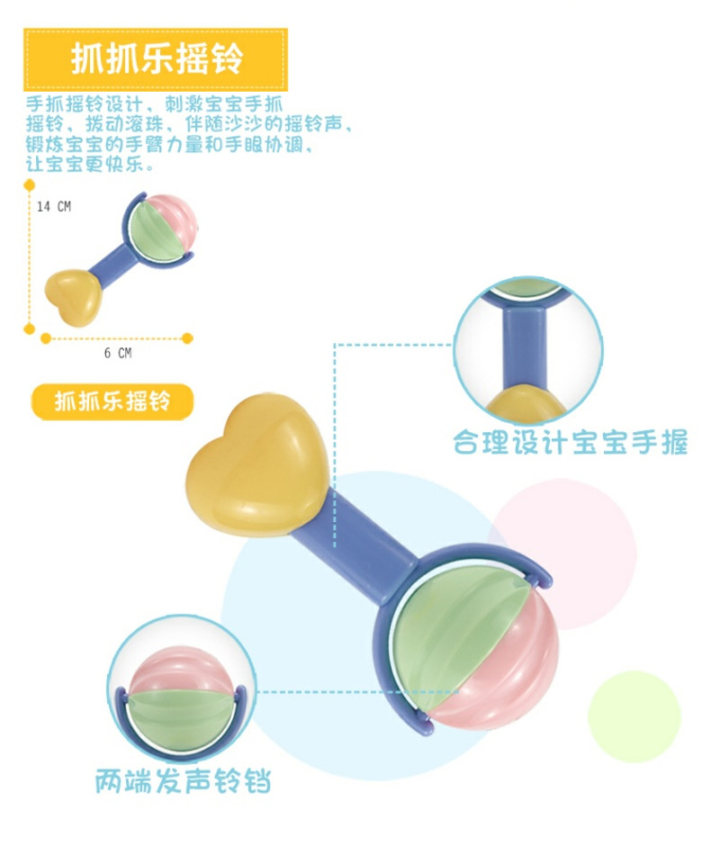 정품 곡물 비 게임 테이블 침대 벨 안전 치아 젤 세트 손 딸랑이 유아 조기 교육 지혜 물린 손 딸랑이