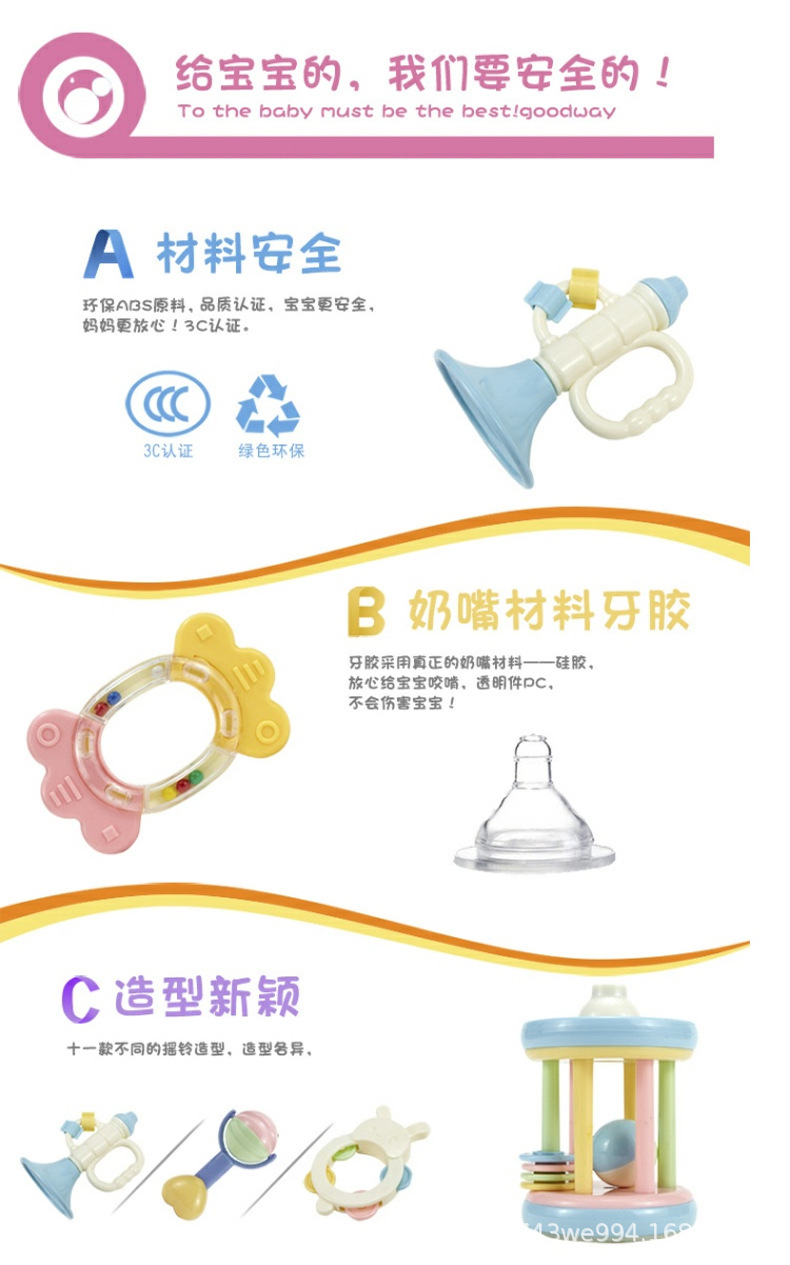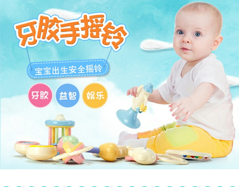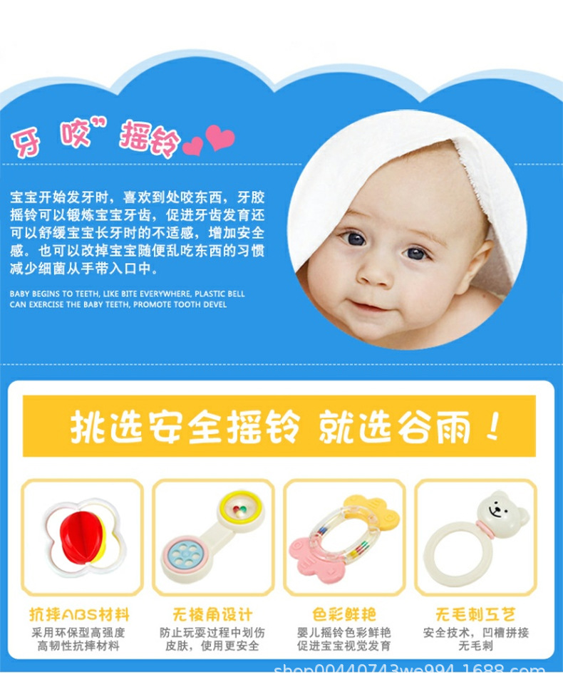 정품 곡물 비 게임 테이블 침대 벨 안전 치아 젤 세트 손 딸랑이 유아 조기 교육 지혜 물린 손 딸랑이스토어 가기