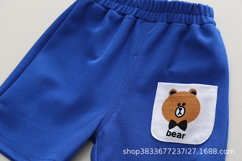 소년 여름 세트 새로운 어린이 여름 투피스 세트 세로 칼라 곰 포켓 아기의 반팔 세트 머리스토어 가기