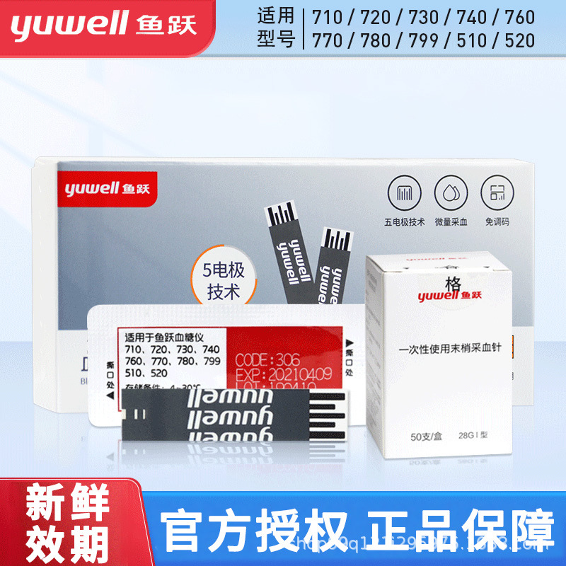 Yuyue 혈당 테스트 종이 710 Yue Zhun 유형 1 혈당 테스트 스트립 730 테스터 가정용 코드없는 740 독립 팩스토어 가기