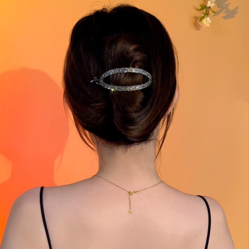 타원형 금속 다이아몬드 헤어 액세서리 한국식 백 헤드 머리핀 여성용 헤어 클립 고급 감각 머리핀 모자