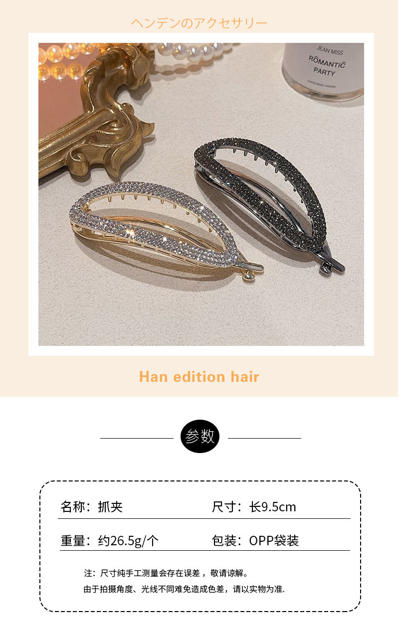 타원형 금속 다이아몬드 헤어 액세서리 한국식 백 헤드 머리핀 여성용 헤어 클립 고급 감각 머리핀 모자스토어 가기