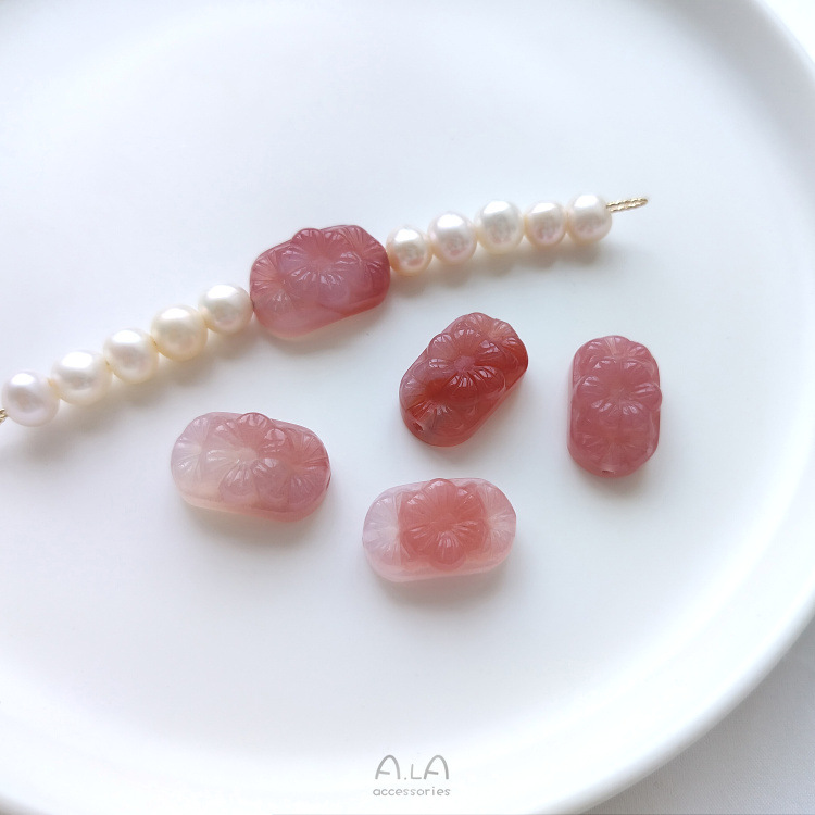 천연 소금 캔디 컬러 마노 꽃 조각 매화 관통 구멍 핸드 카드 액세서리 diy 착용 팔찌 액세서리스토어 가기