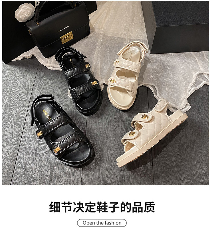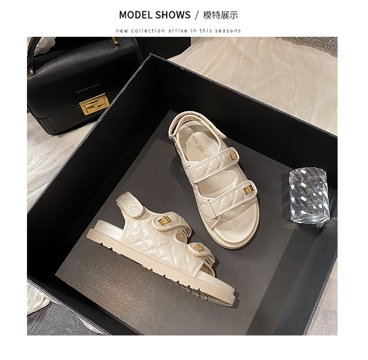 샤오샹풍 벨크로 스포츠 샌들 여성용 2024 신상 여름 다이아몬드 무늬 두꺼운 플랫 바닥 큰 사이즈 샌들 여성용 외출용 41스토어 가기
