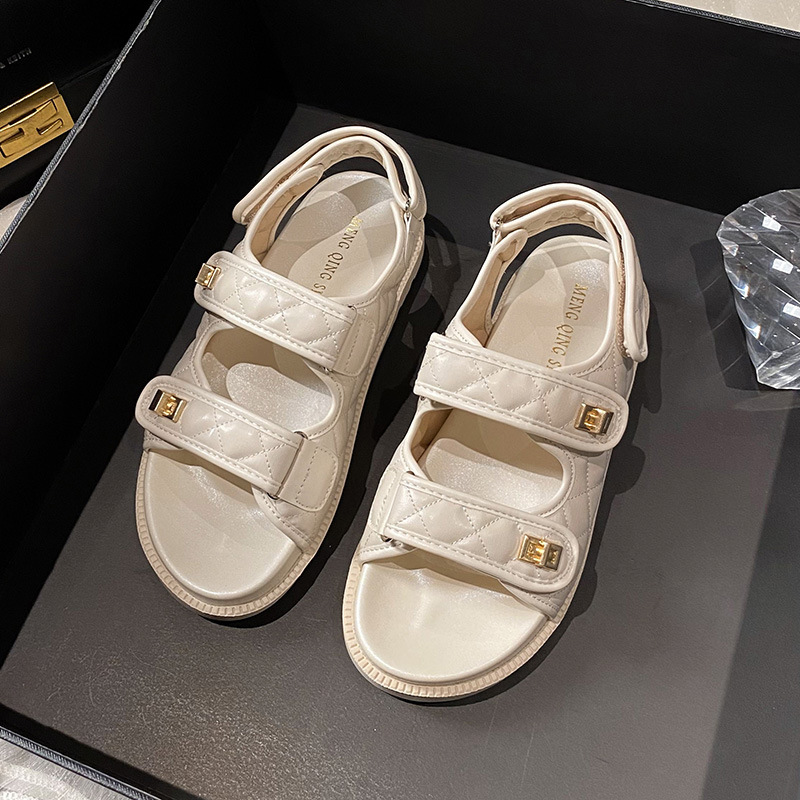 샤오샹풍 벨크로 스포츠 샌들 여성용 2024 신상 여름 다이아몬드 무늬 두꺼운 플랫 바닥 큰 사이즈 샌들 여성용 외출용 41
