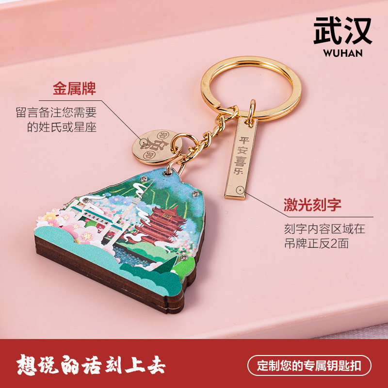 원래 우한 키 체인 옐로우 크레인 타워 우한 대학 이스트 레이크 성 백 가족 이름 축복 여행 기념 펜던트