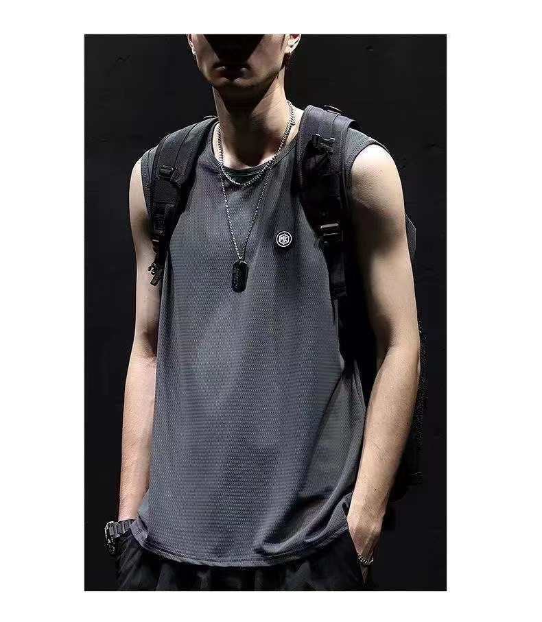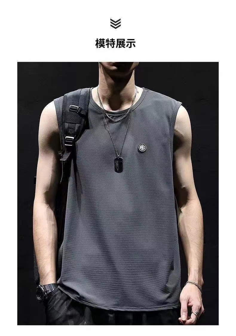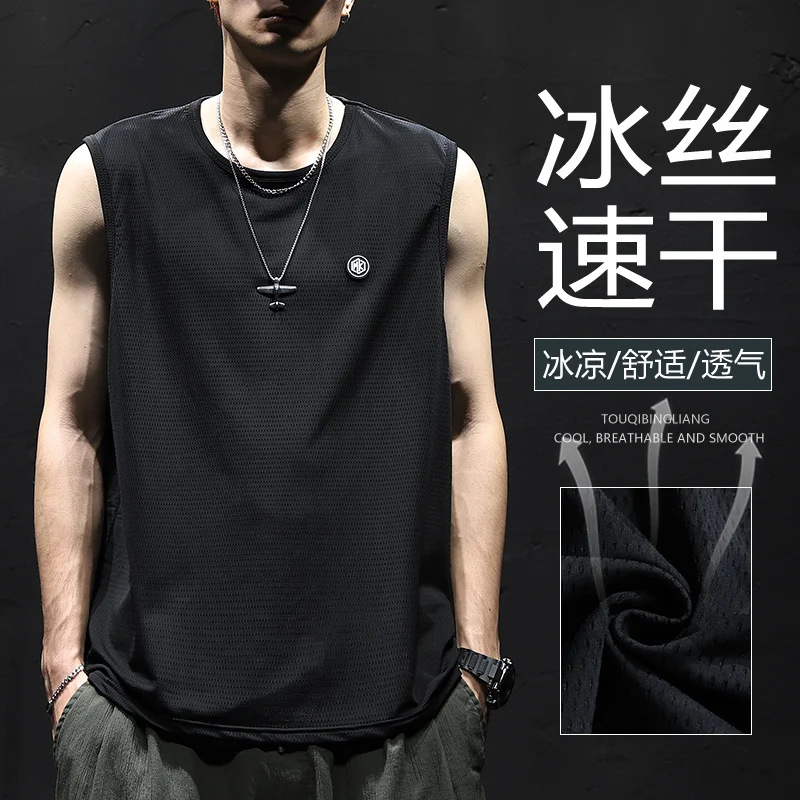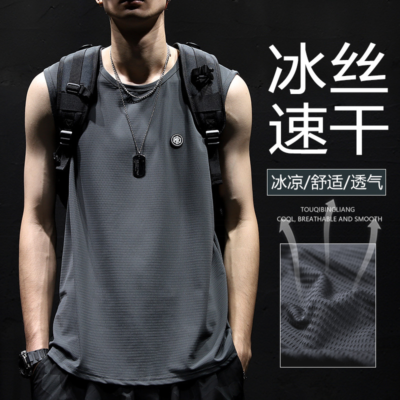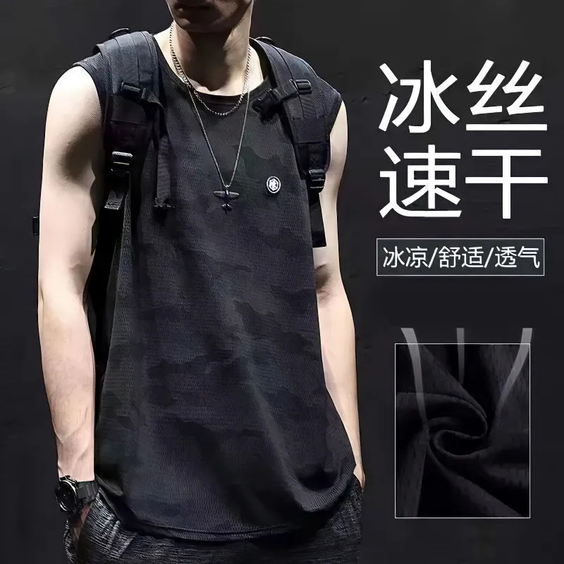 여름 아이스 실크 민소매 조끼 남자의 양복 조끼 속건 아이스 센스 느슨한 플러스 사이즈 남자의 스포츠 피트니스 위장 티셔츠 유행스토어 가기