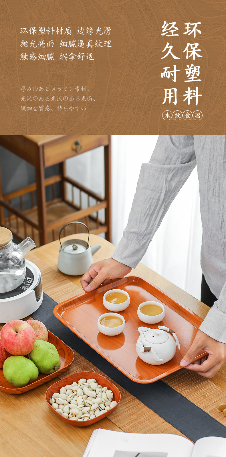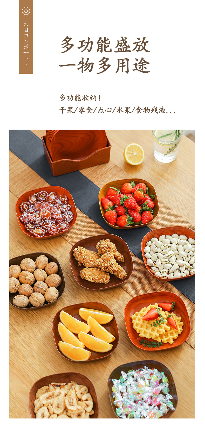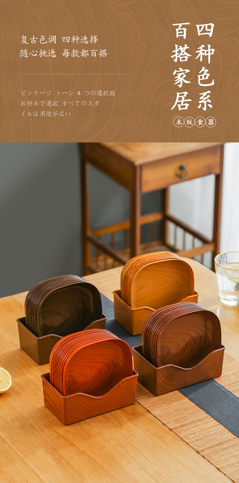 새로운 가정용 침을 뱉는 뼈 접시 일본식 모조 나뭇결 간식 간식 과일 접시 식품 학년 플라스틱 간식 접시 뼈 접시