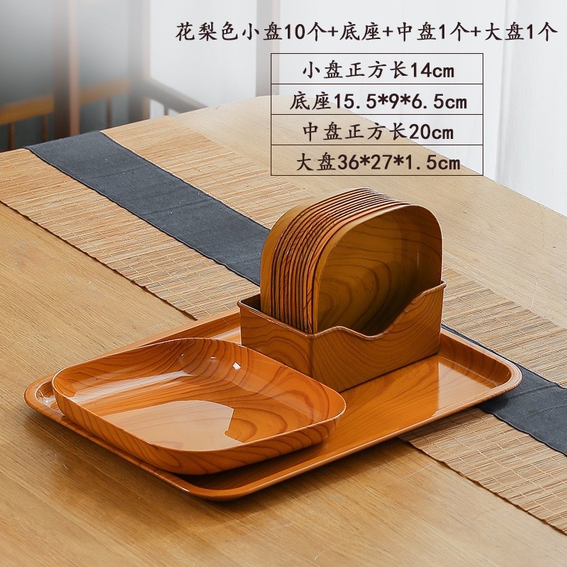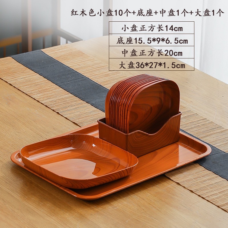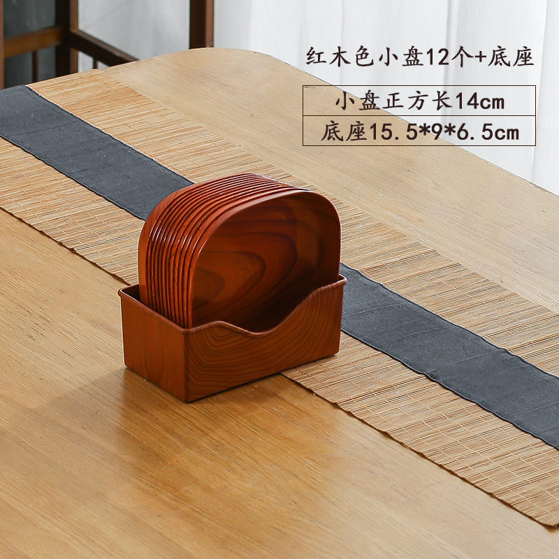 • [레드 우드 컬러] 사각 접시 12 + 베이스