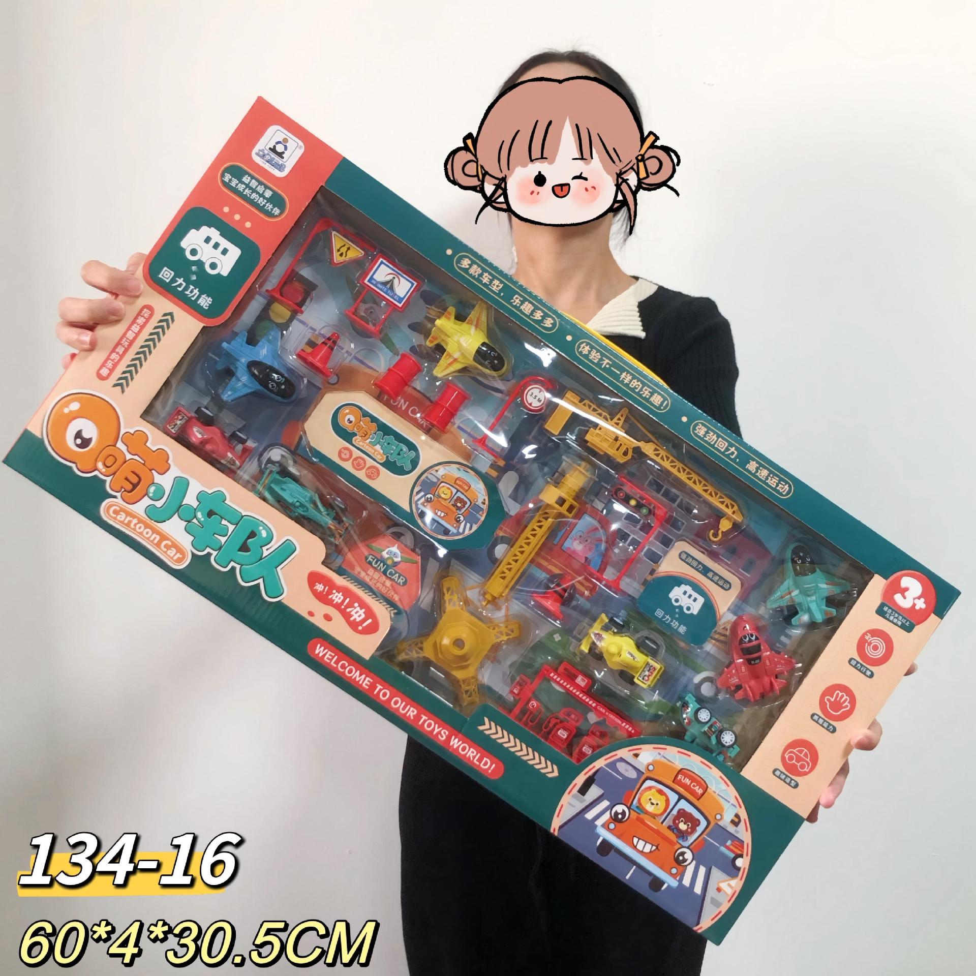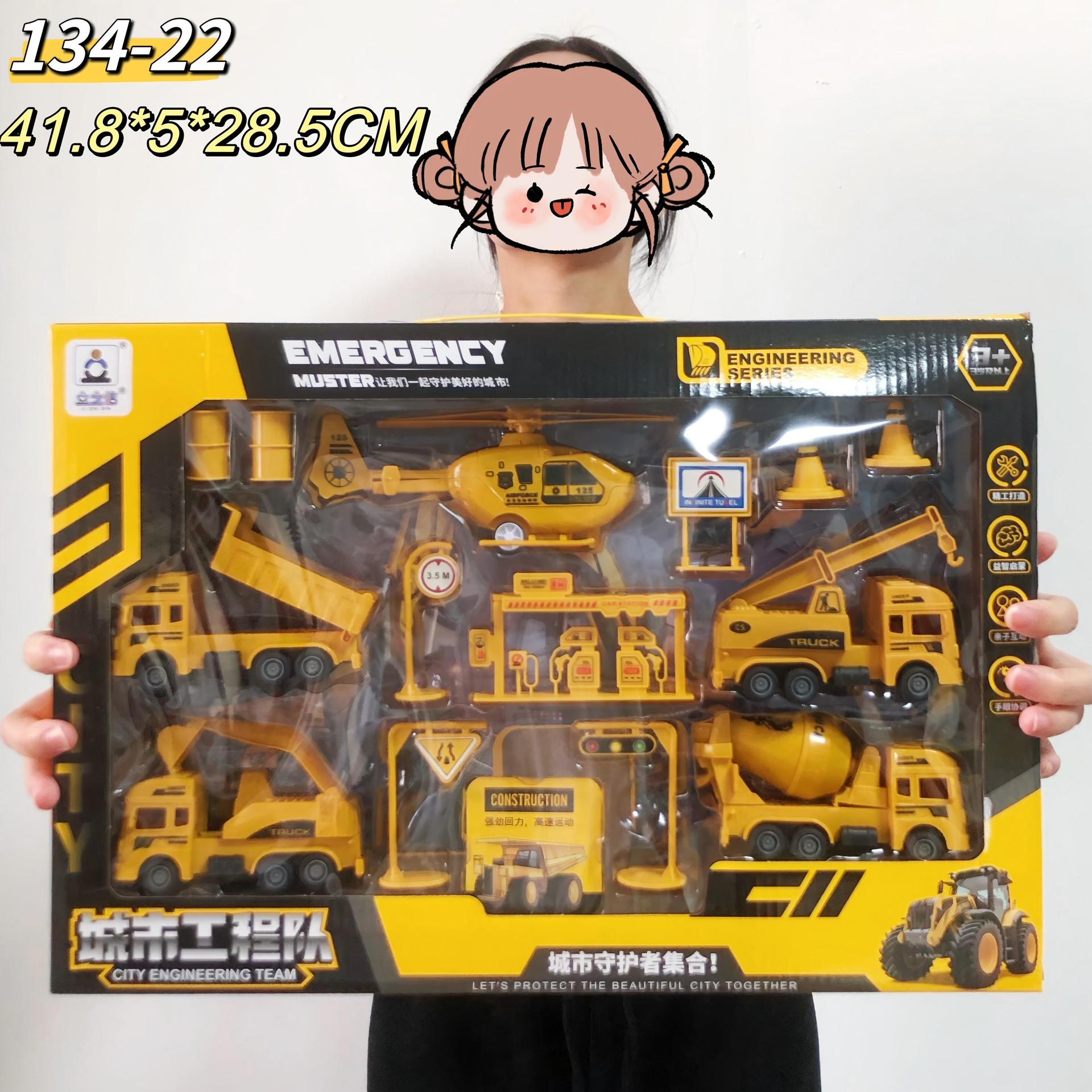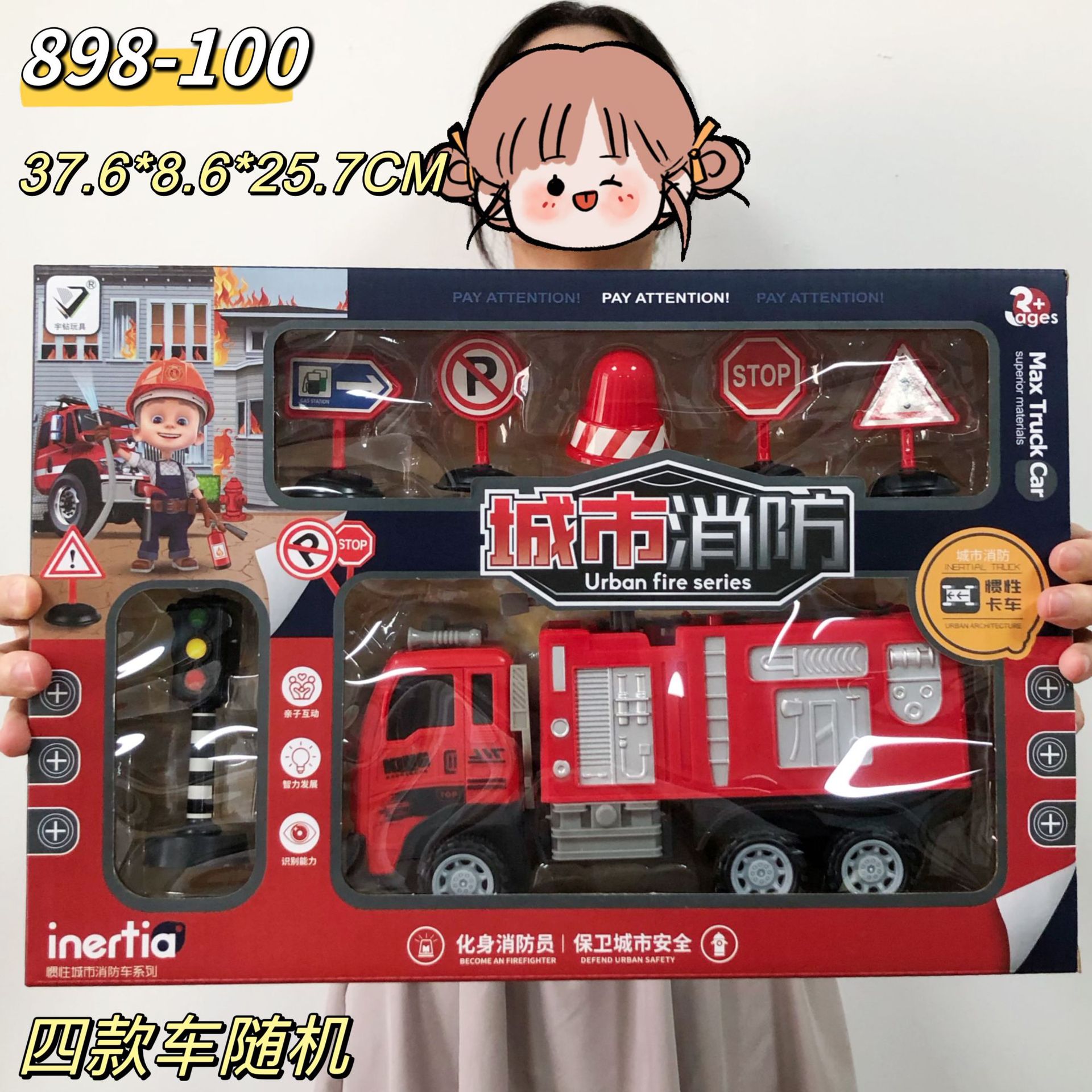 뜨거운 판매 어린이 풀백 자동차 대형 관성 엔지니어링 자동차 장난감 선물 상자 세트 소년 화재 자동차 모델스토어 가기