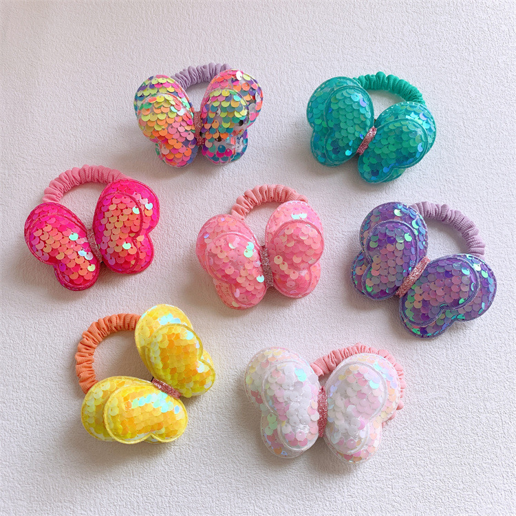 한국식 어린이 스팽글 나비 소장 헤어 밴드 소녀의 머리없는 고무 밴드 머리띠 포니 테일 헤어 로프 모자스토어 가기