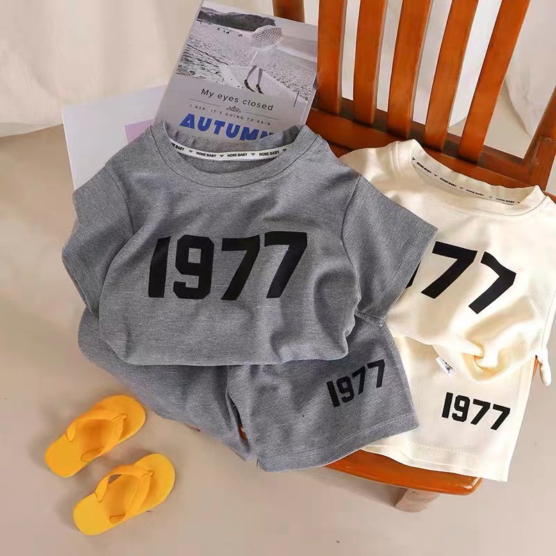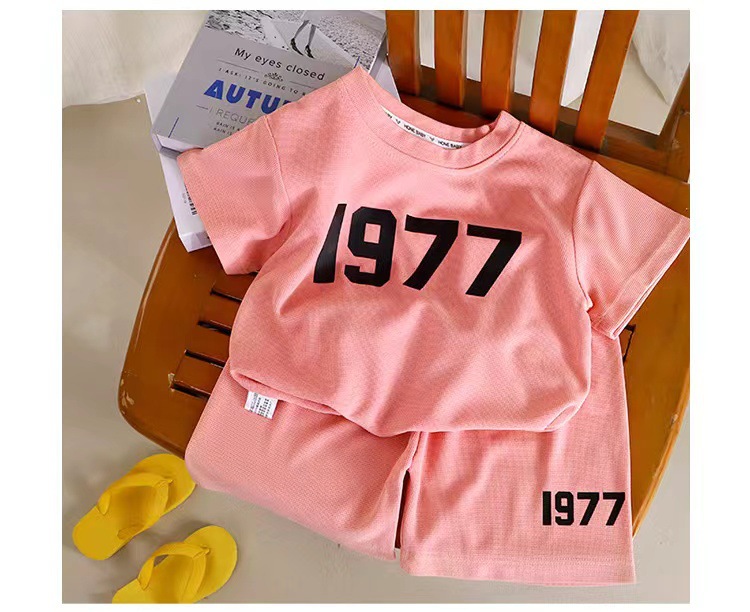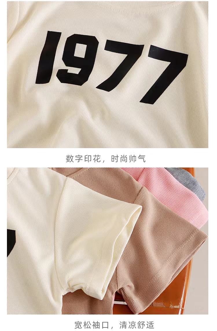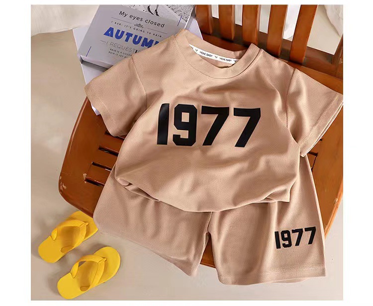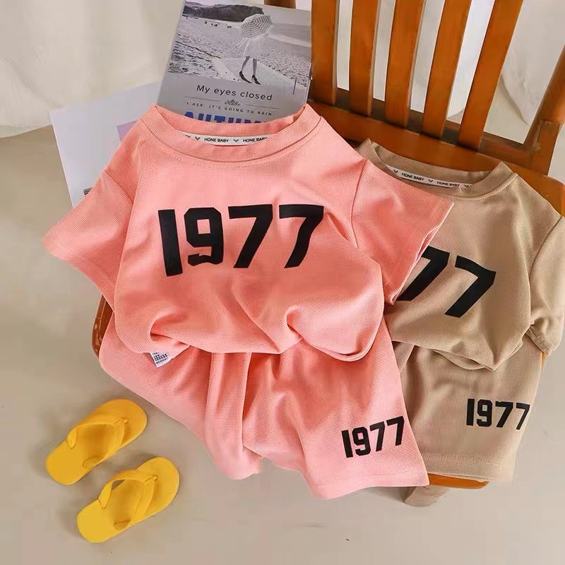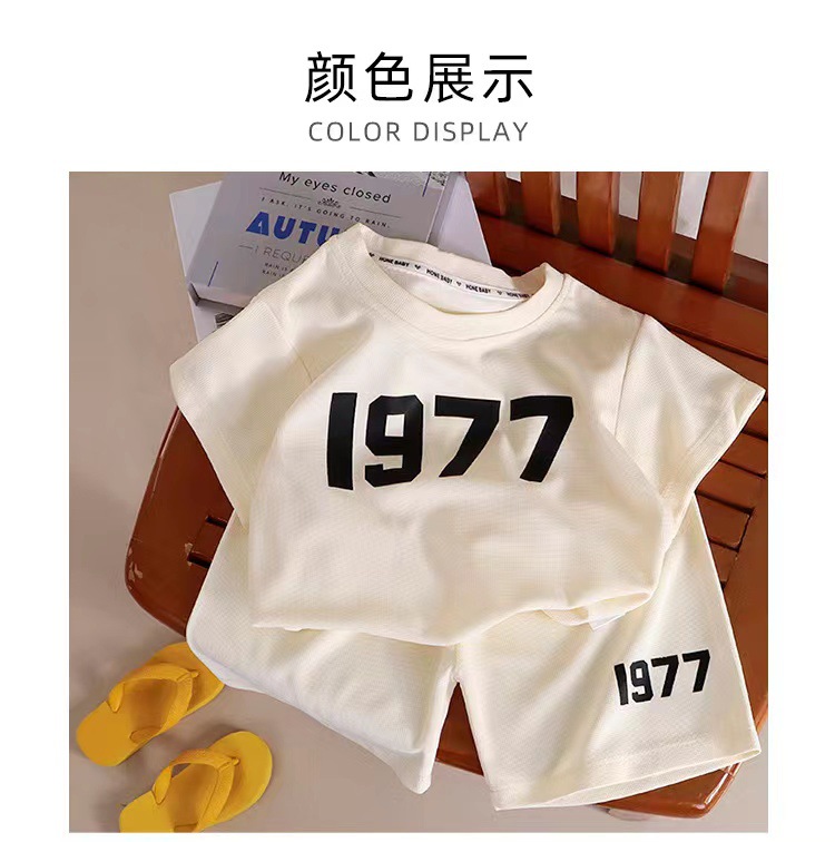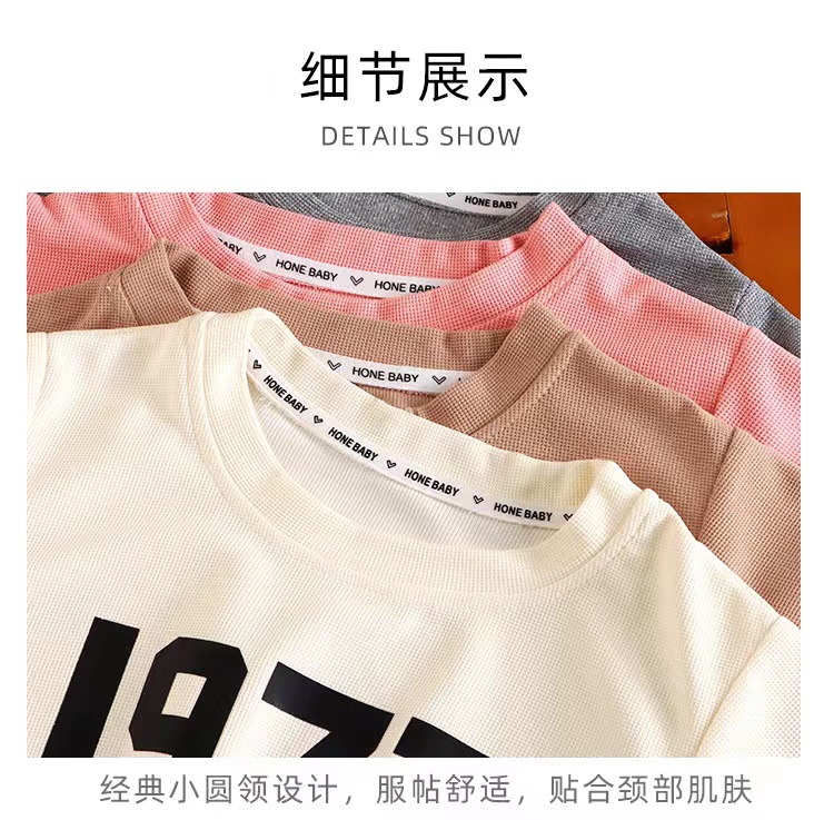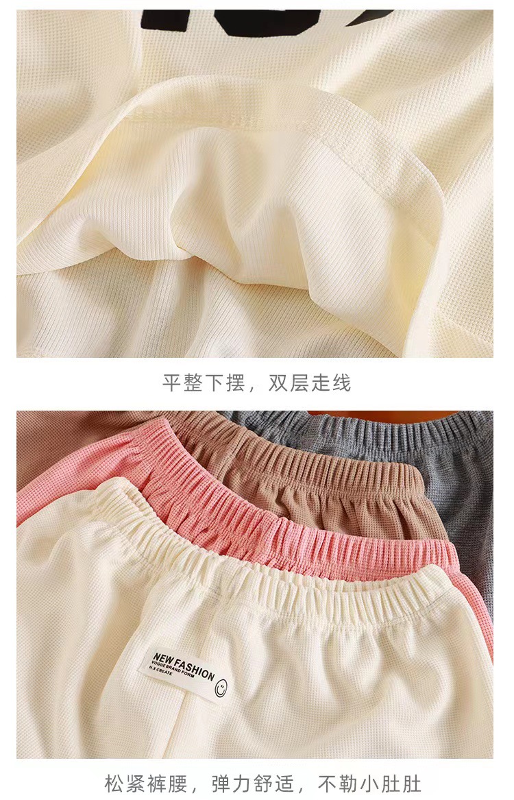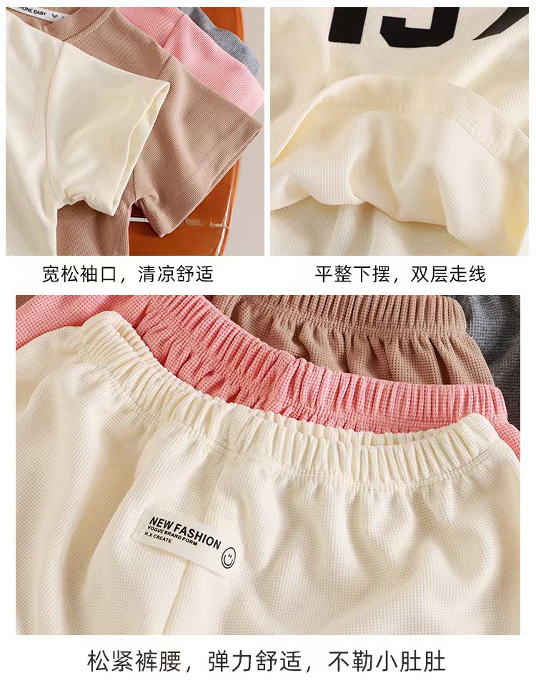 儿童华夫格套装2023夏季新款男女童数字印花短袖t短裤宝宝两件套