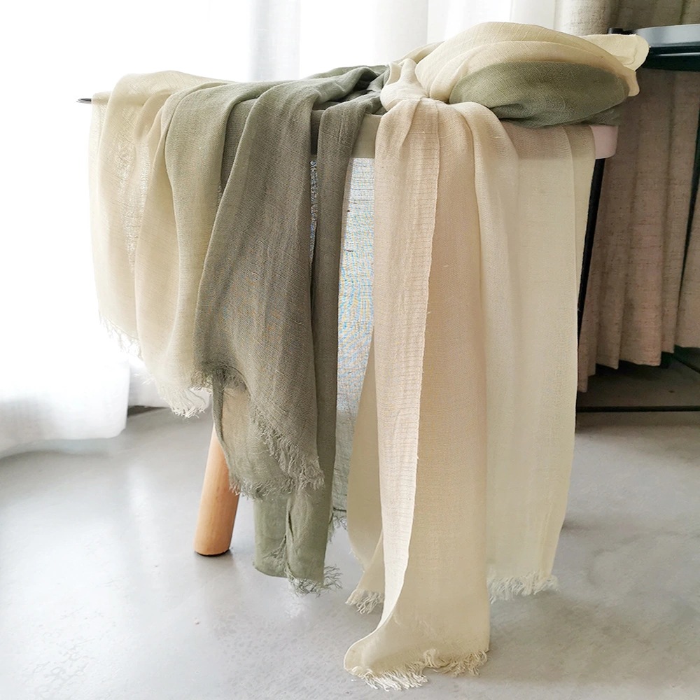 소량 주문 커스텀 크로스보더 아마존 얇은 면이나 린넨 스카프 봄과 가을 교수형 염색 슬러브 면 스카프 선 스크린 숄 지원스토어 가기