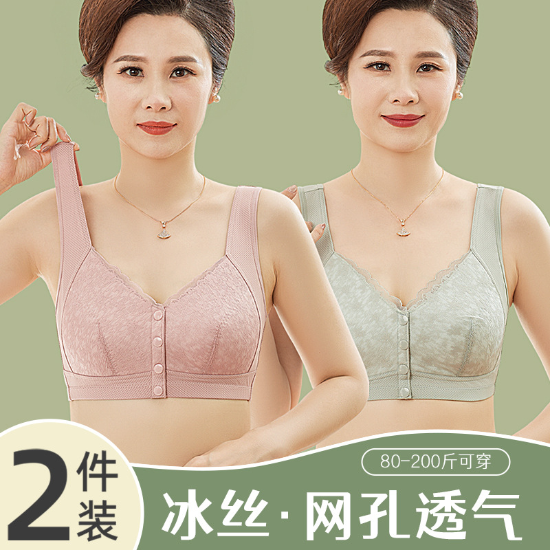 엄마의 속옷 여자의 여름 얇은 전면 버클 브래지어 없음 강철 반지 중년 및 노인 여자의 아이스 실크 플러스 사이즈 조끼 브래지어스토어 가기