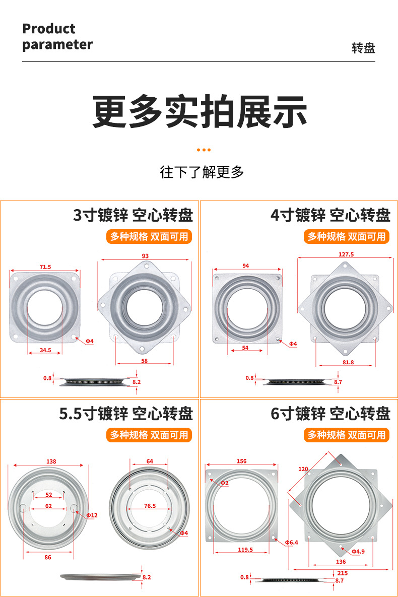 중공 라운드 턴테이블 5.5 인치 8 인치 9 인치 12 인치 14 인치 360 도 회전 하드웨어 가구 사무실 의자 액세서리스토어 가기