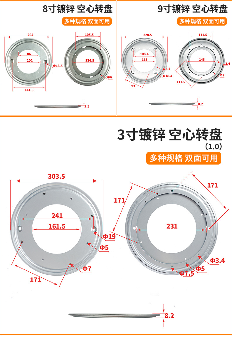 중공 라운드 턴테이블 5.5 인치 8 인치 9 인치 12 인치 14 인치 360 도 회전 하드웨어 가구 사무실 의자 액세서리