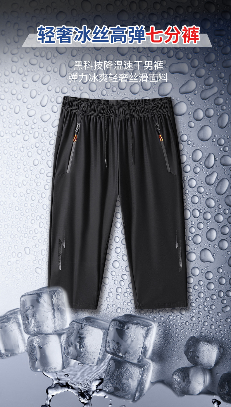 헤어 크롭 팬츠 남성 여름 얇은 캐주얼 바지 2023 새로운 스트레이트 팬츠 학생들은 크롭 바지를 입는다스토어 가기