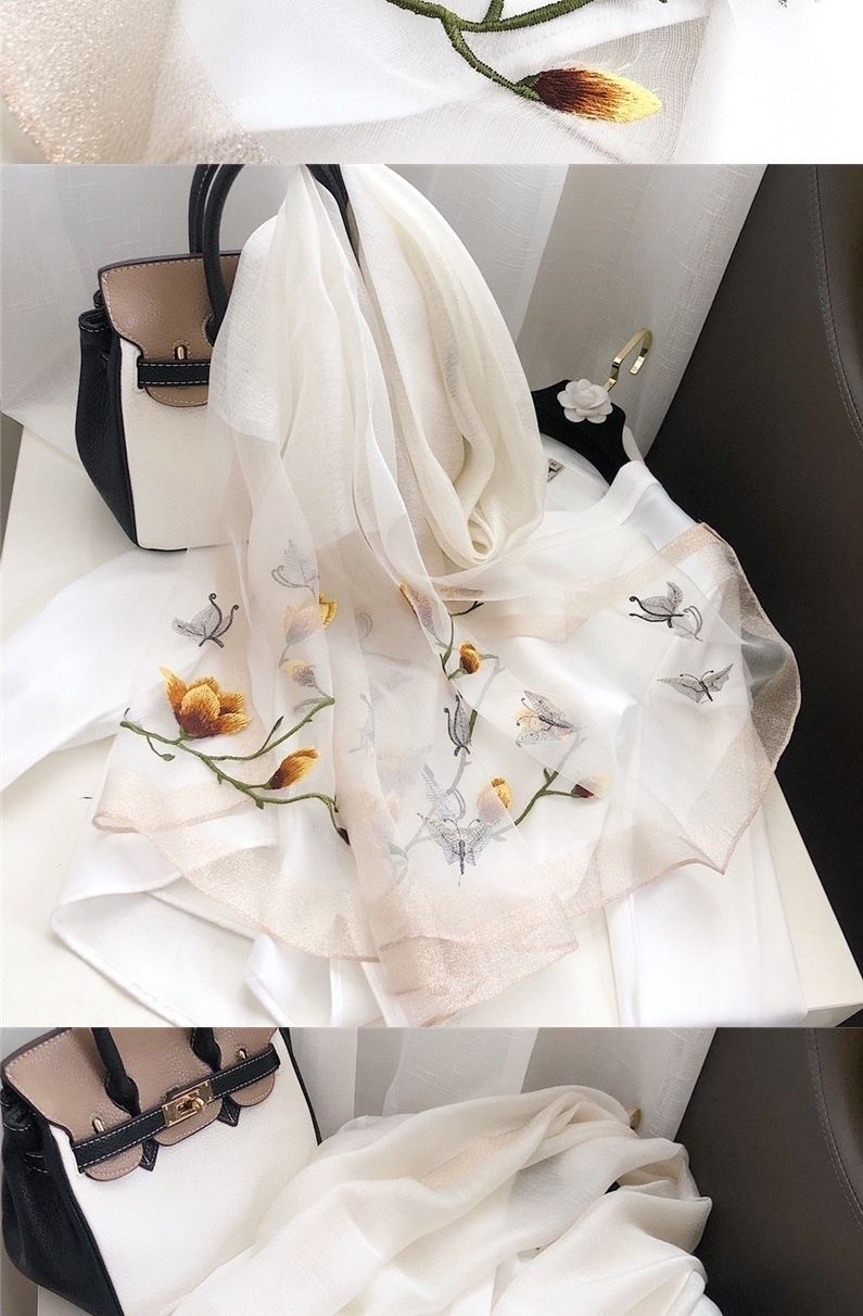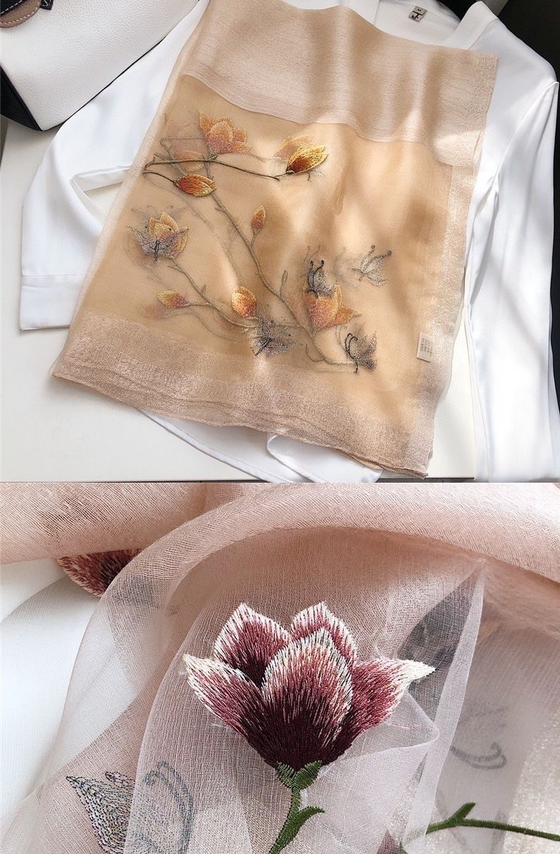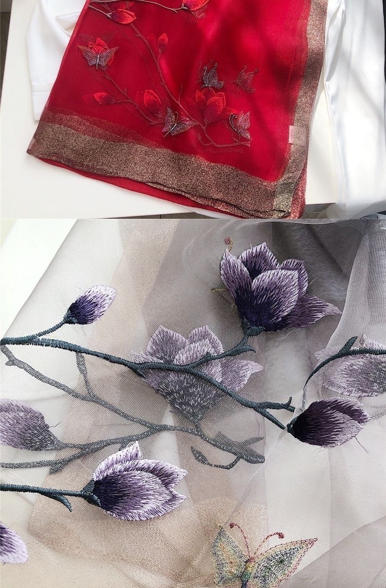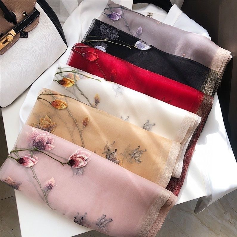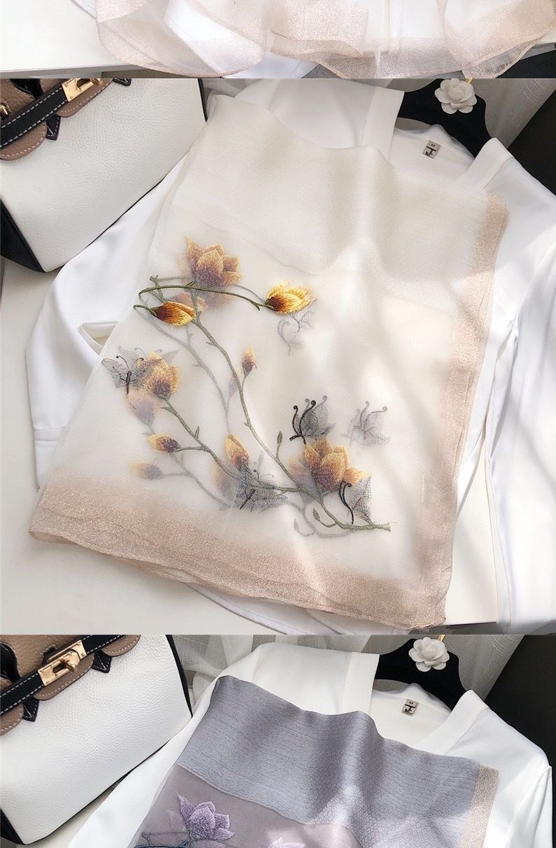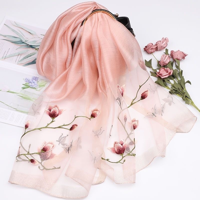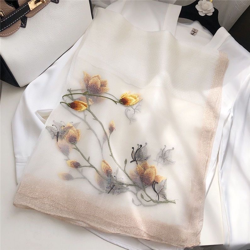 봄과 가을 모든 매치 실크 스카프 여성용 여름 얇은 뽕나무 실크 자수 실크 스카프 세련된 어머니의 치파오 숄