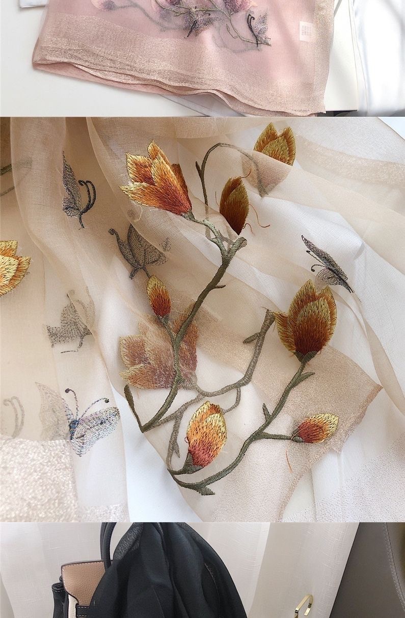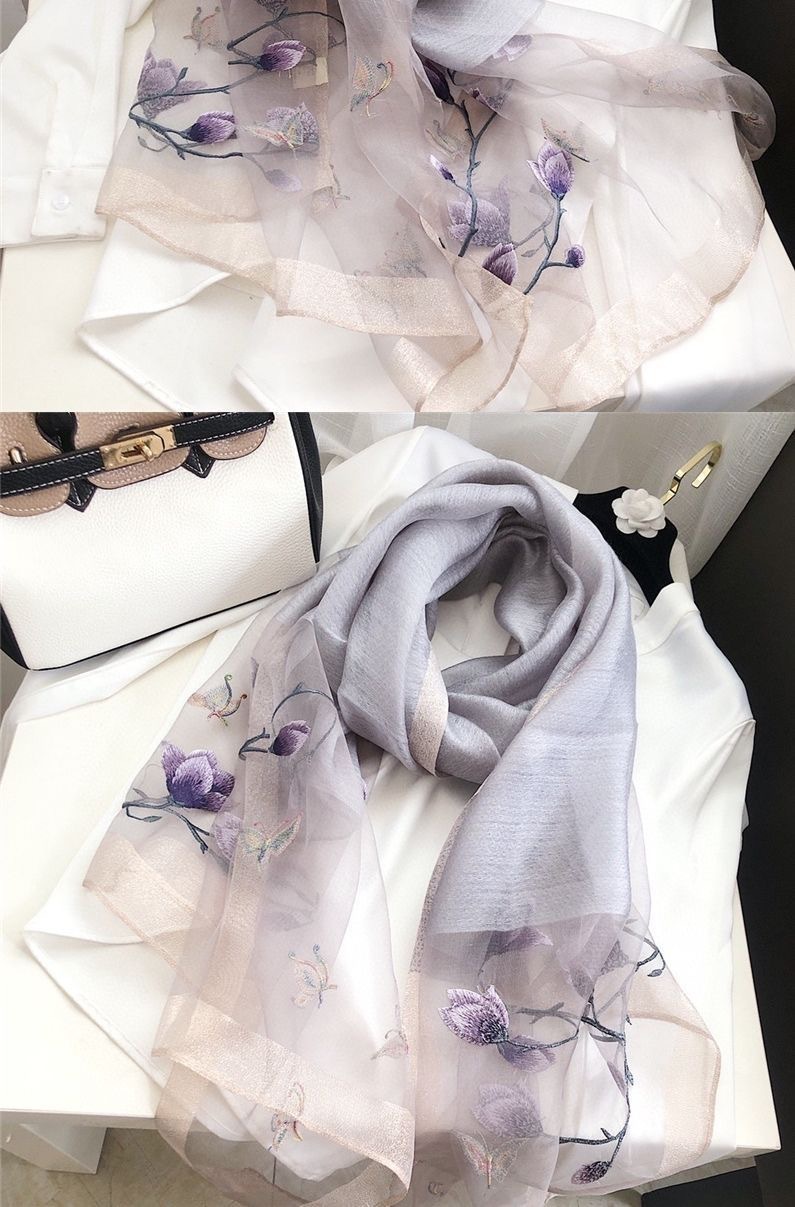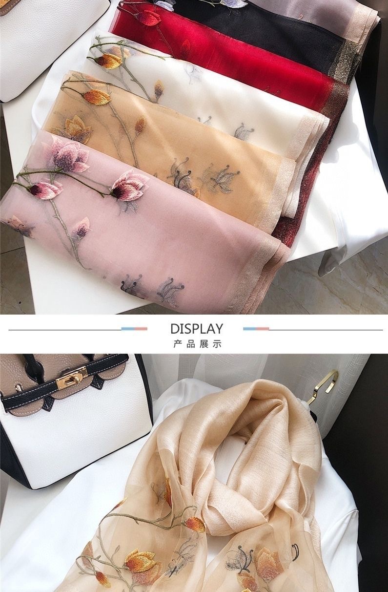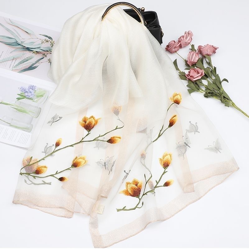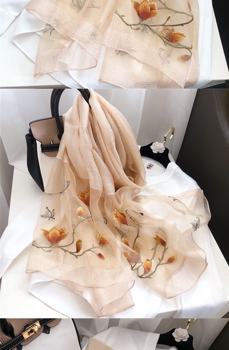 봄과 가을 모든 매치 실크 스카프 여성용 여름 얇은 뽕나무 실크 자수 실크 스카프 세련된 어머니의 치파오 숄