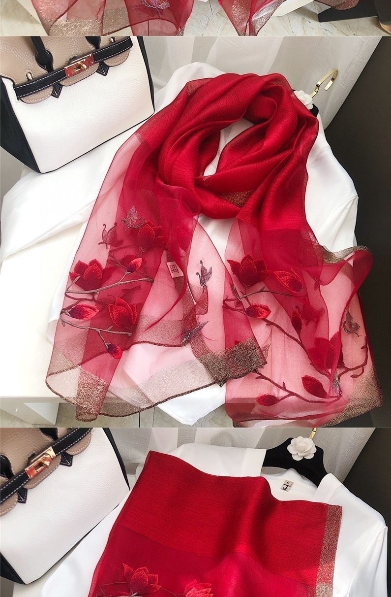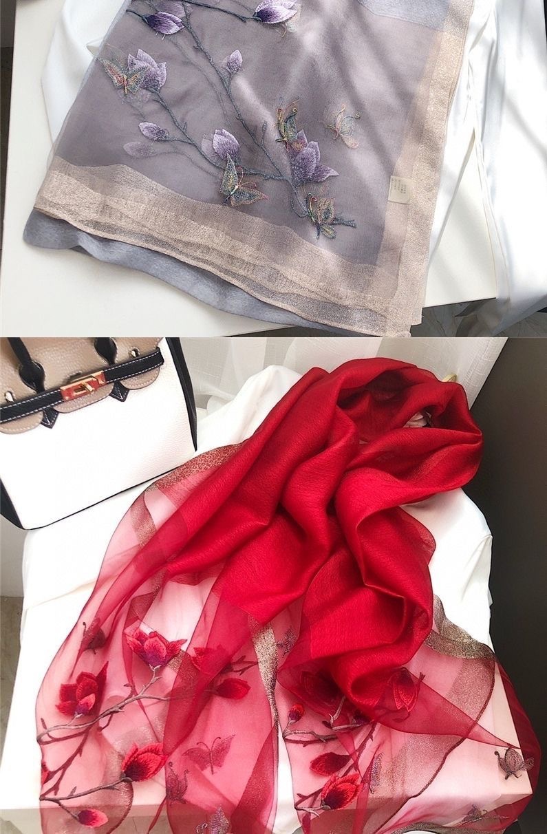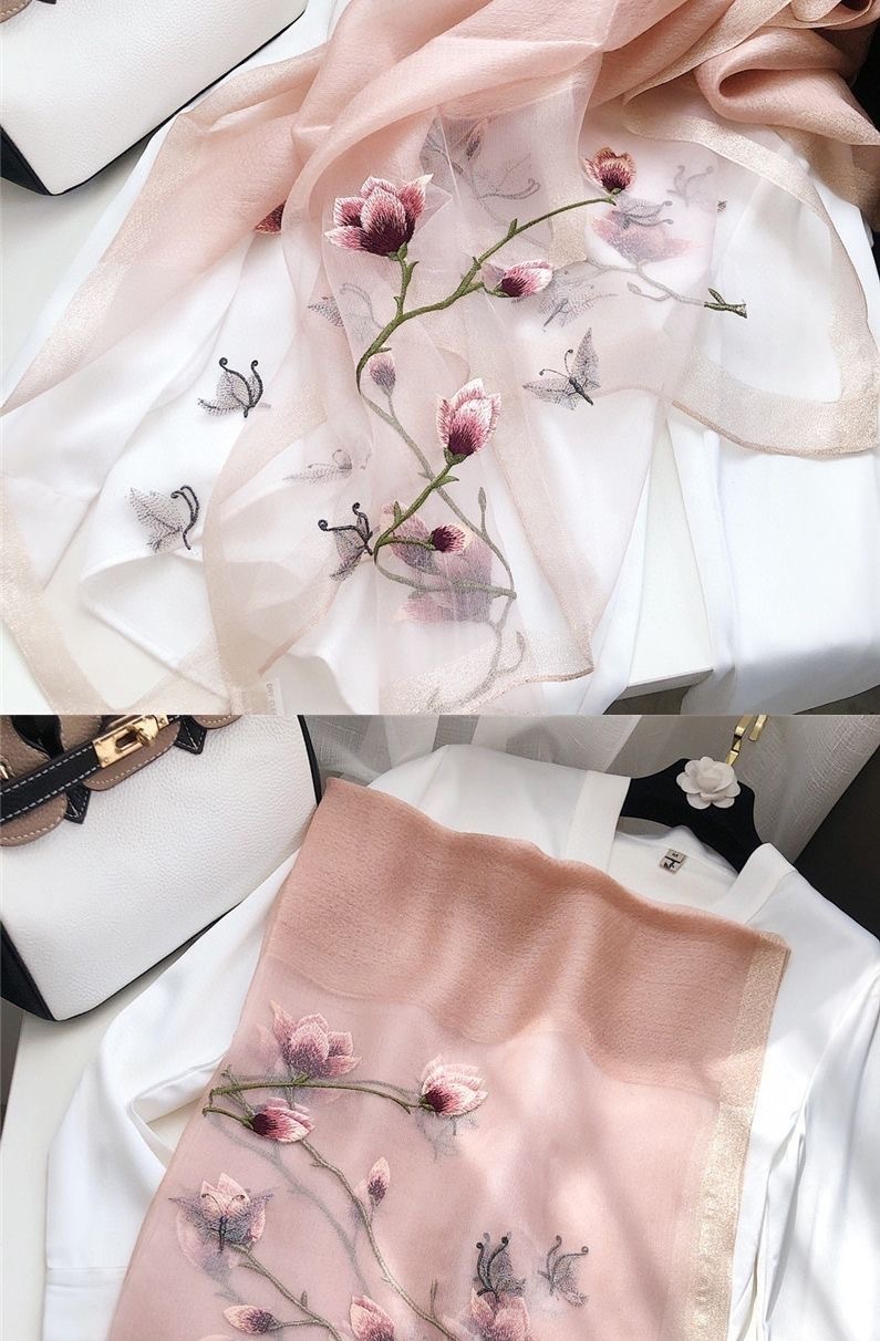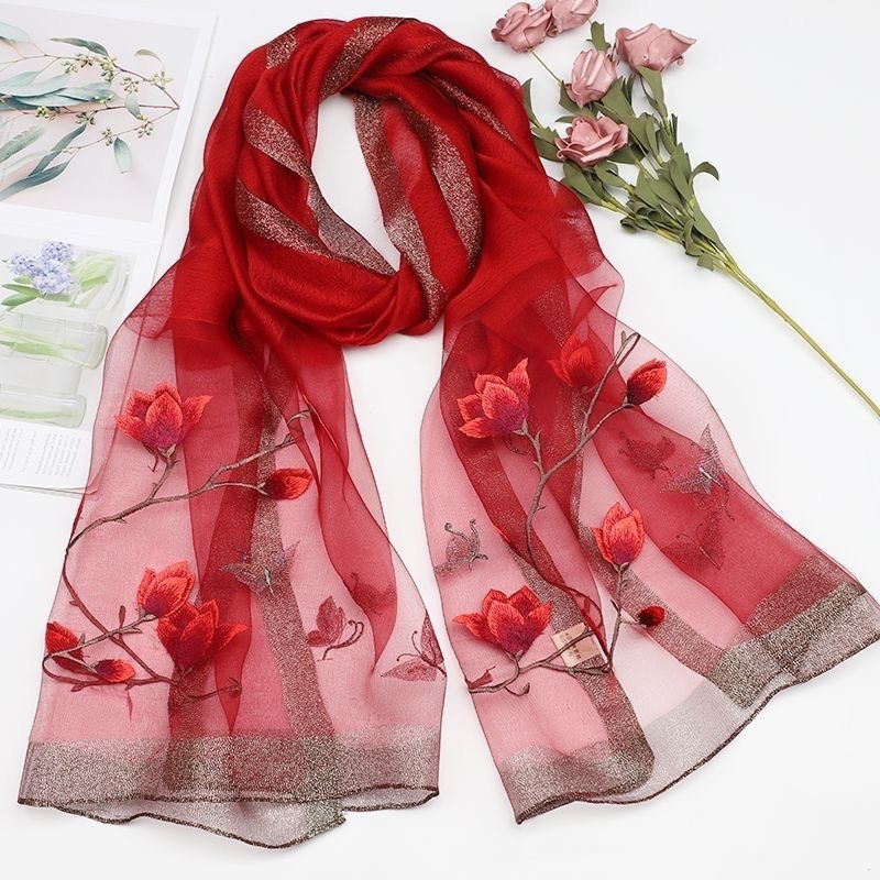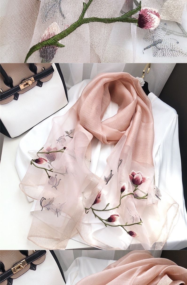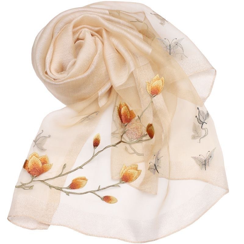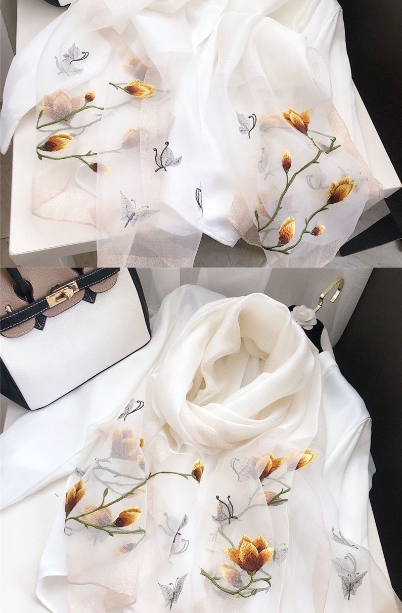 봄과 가을 모든 매치 실크 스카프 여성용 여름 얇은 뽕나무 실크 자수 실크 스카프 세련된 어머니의 치파오 숄