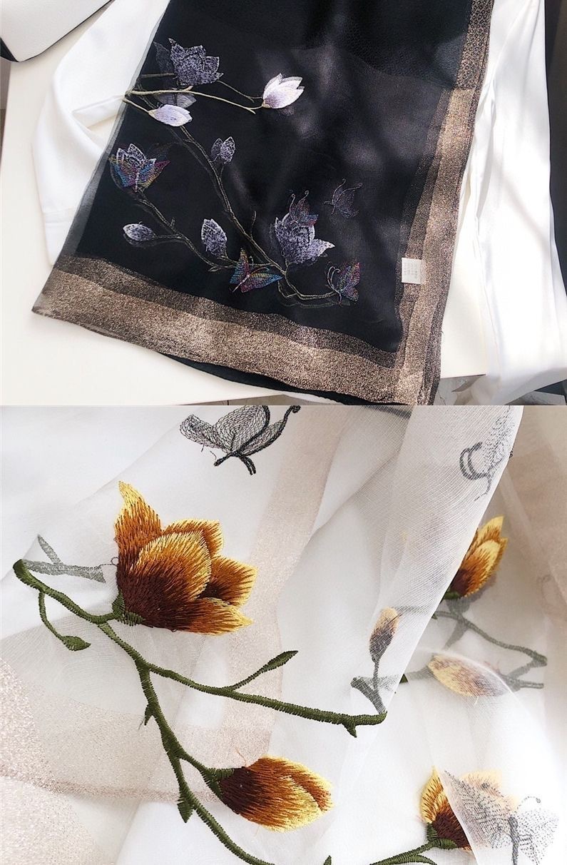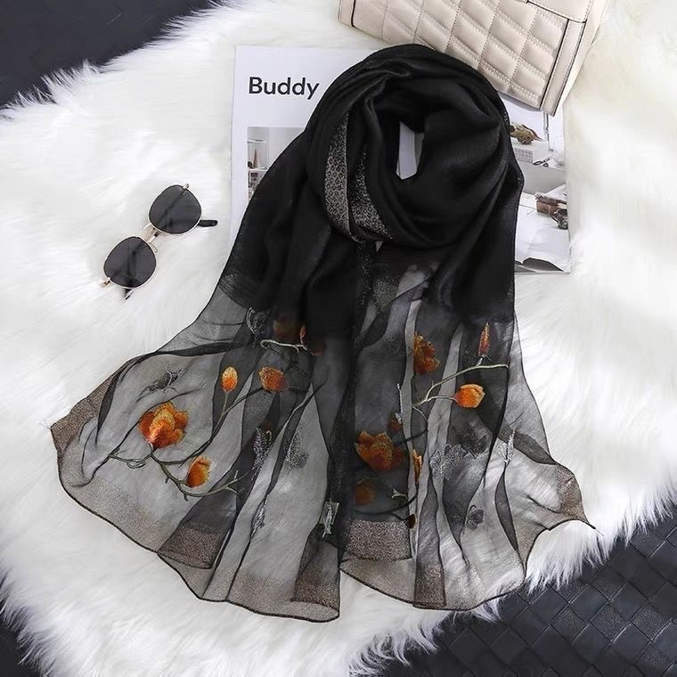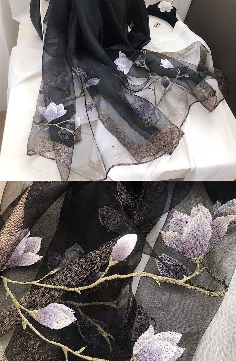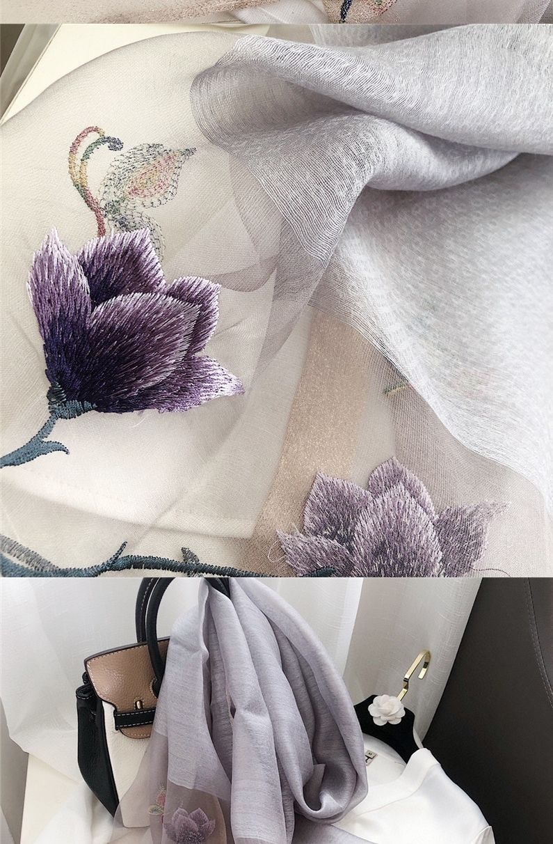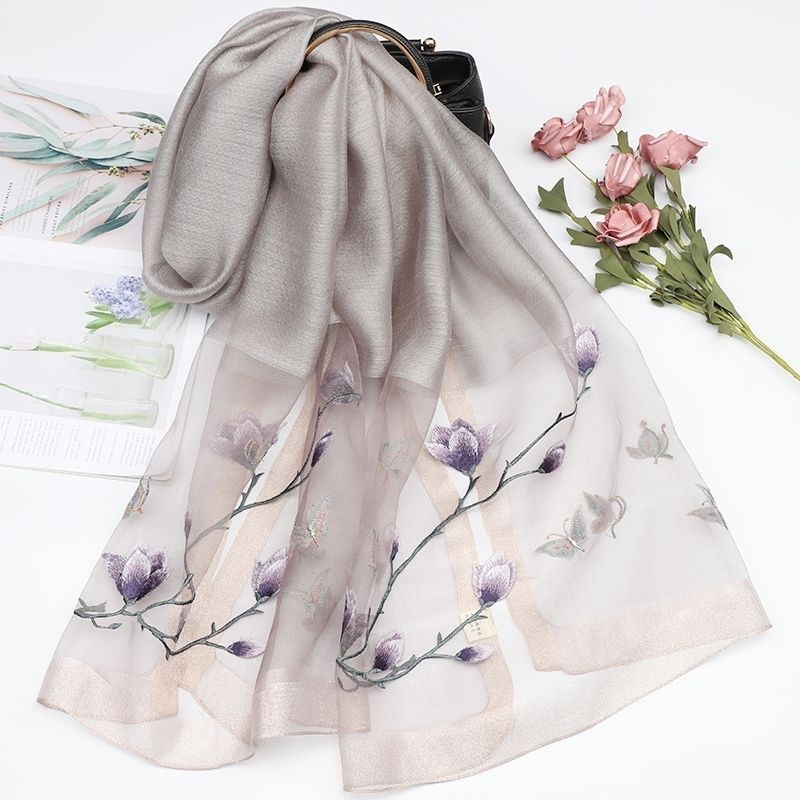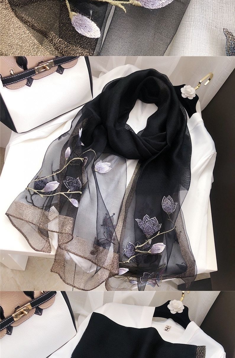 봄과 가을 모든 매치 실크 스카프 여성용 여름 얇은 뽕나무 실크 자수 실크 스카프 세련된 어머니의 치파오 숄