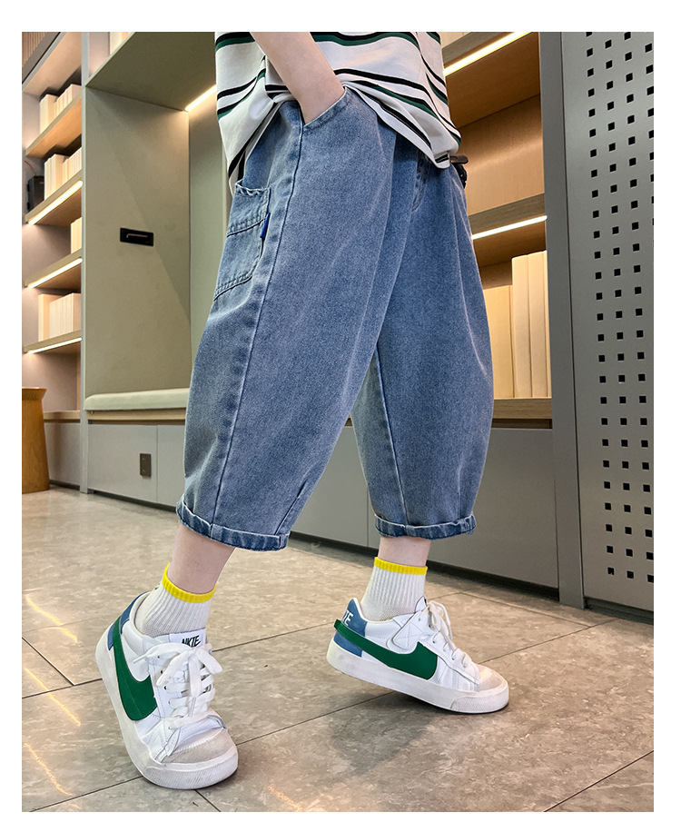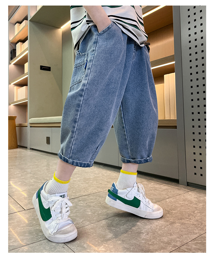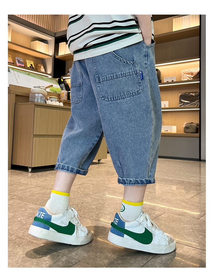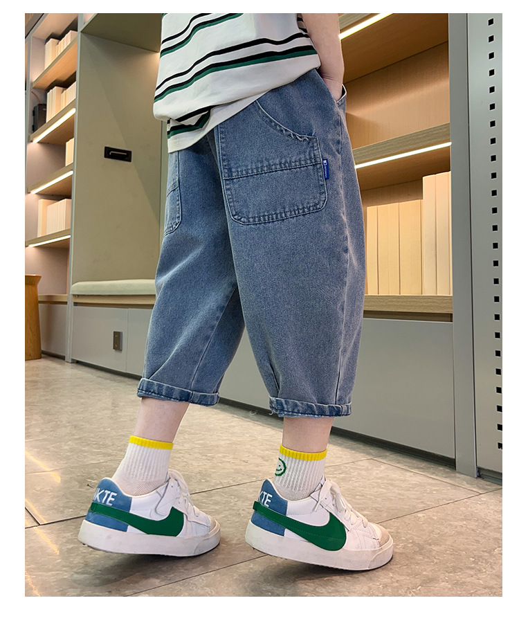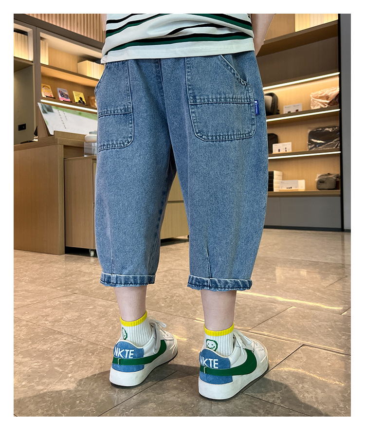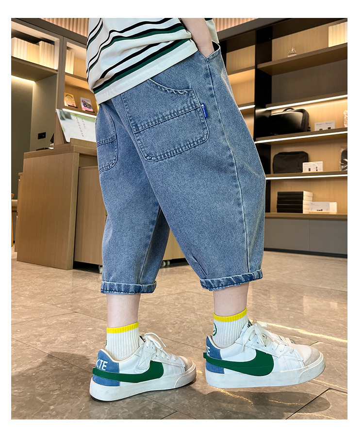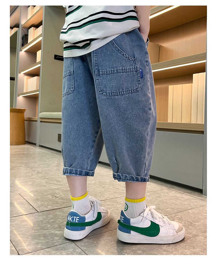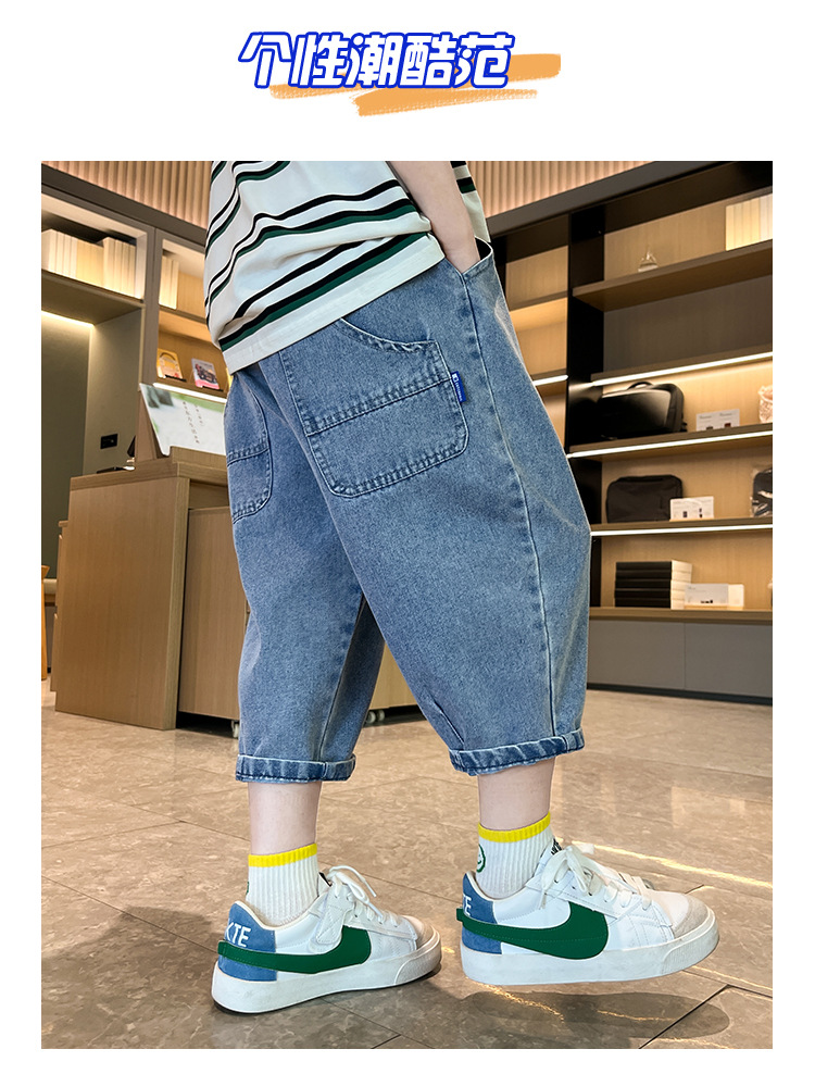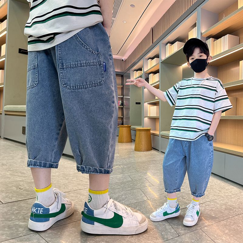 여름 데님 반바지 소년 데님 반바지 여름 새 어린이 카프리 바지 얇은 대형 어린이 바지 소년스토어 가기