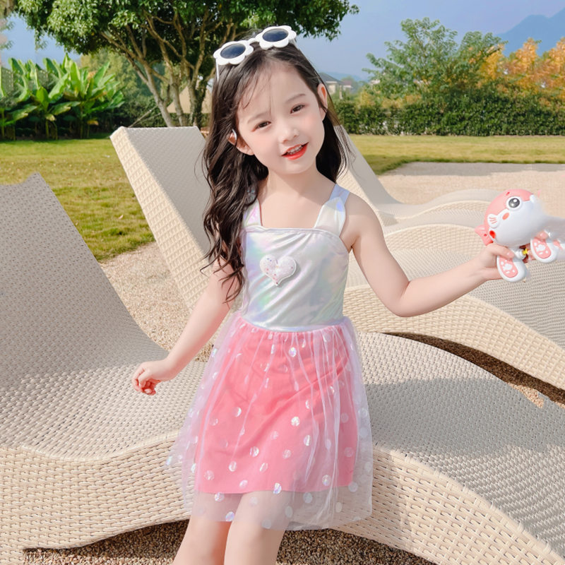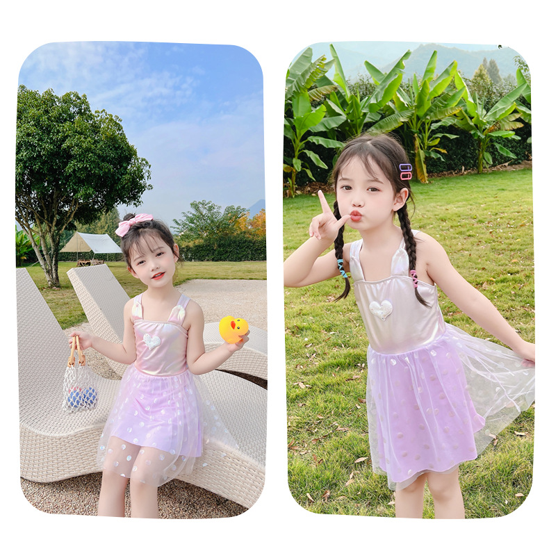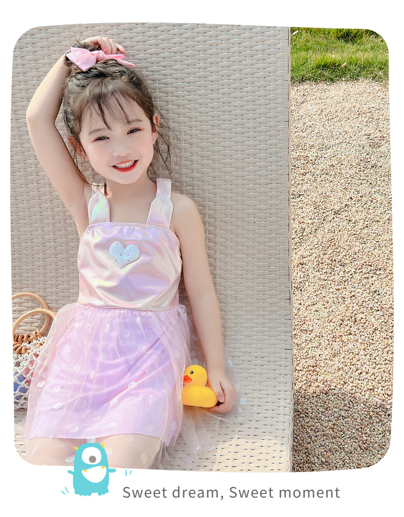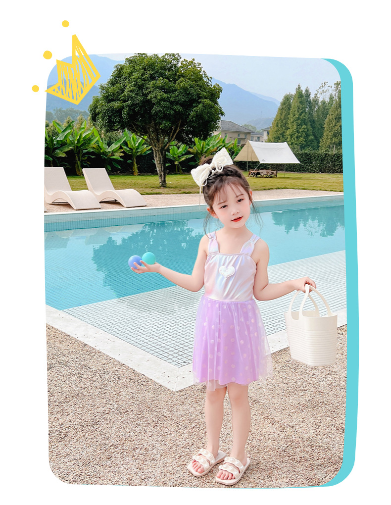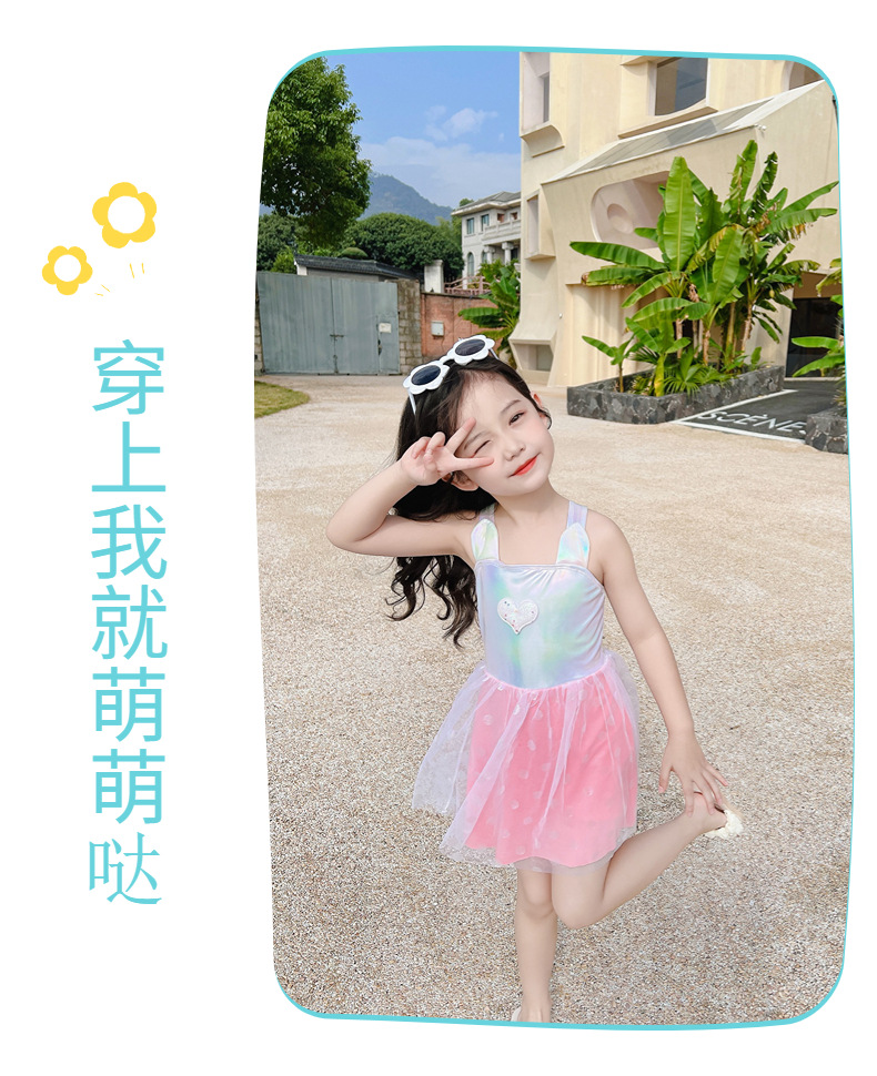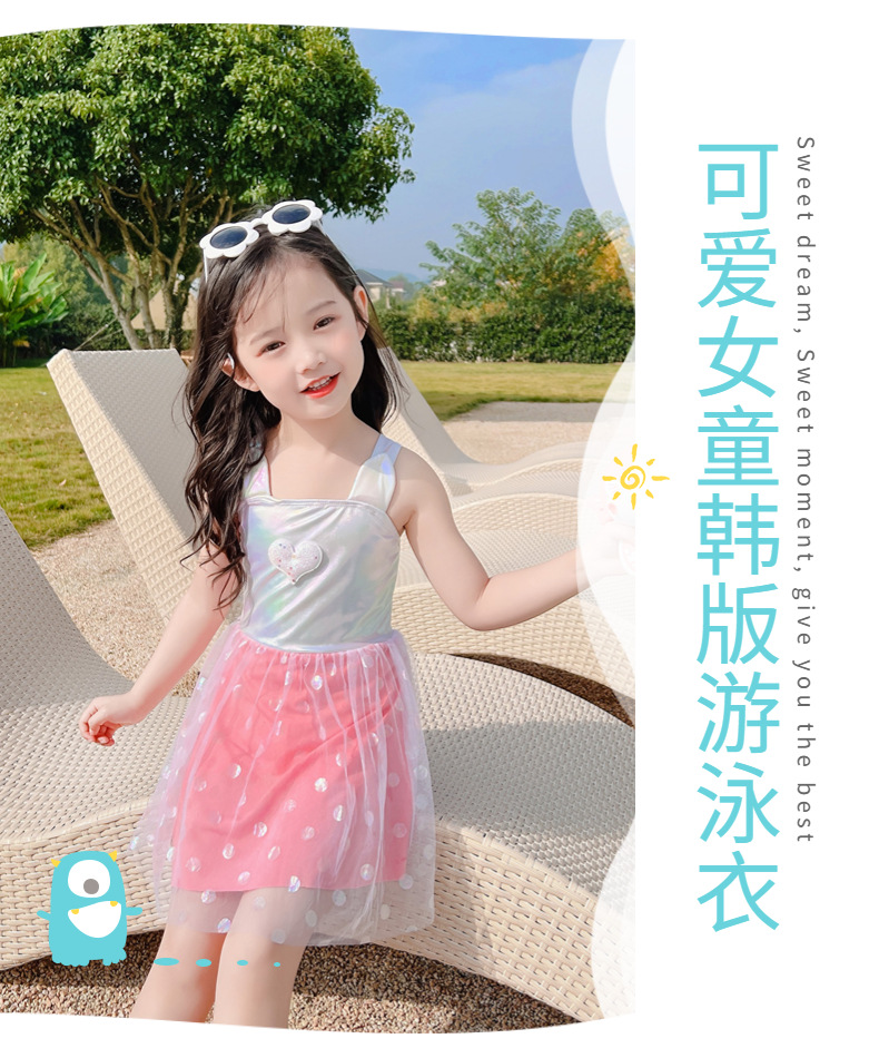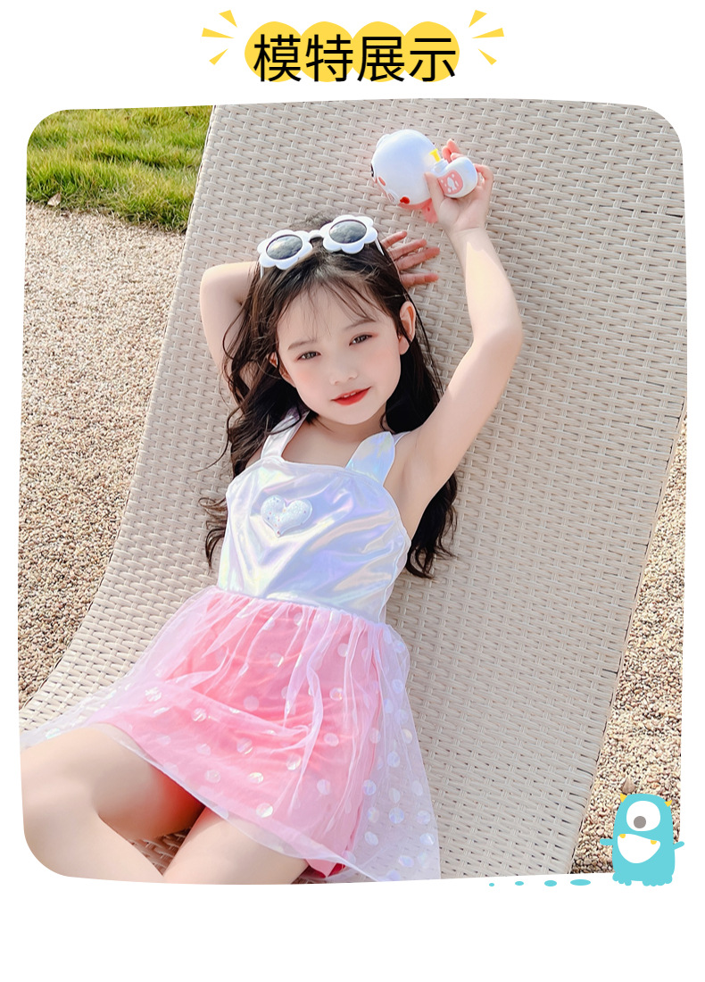 만화처럼 귀여운 여자아이들을 위한 2025년 여름 신상 원피스 스타일 백리스 공주풍 여자아이 온천 수영복스토어 가기