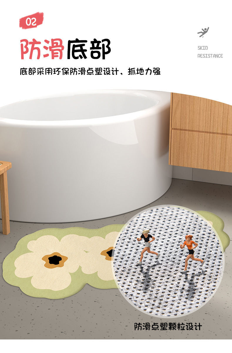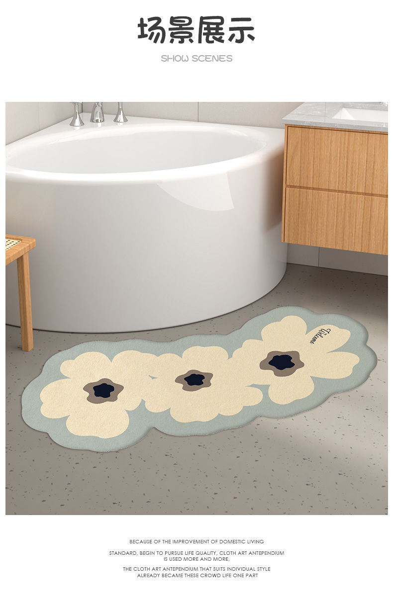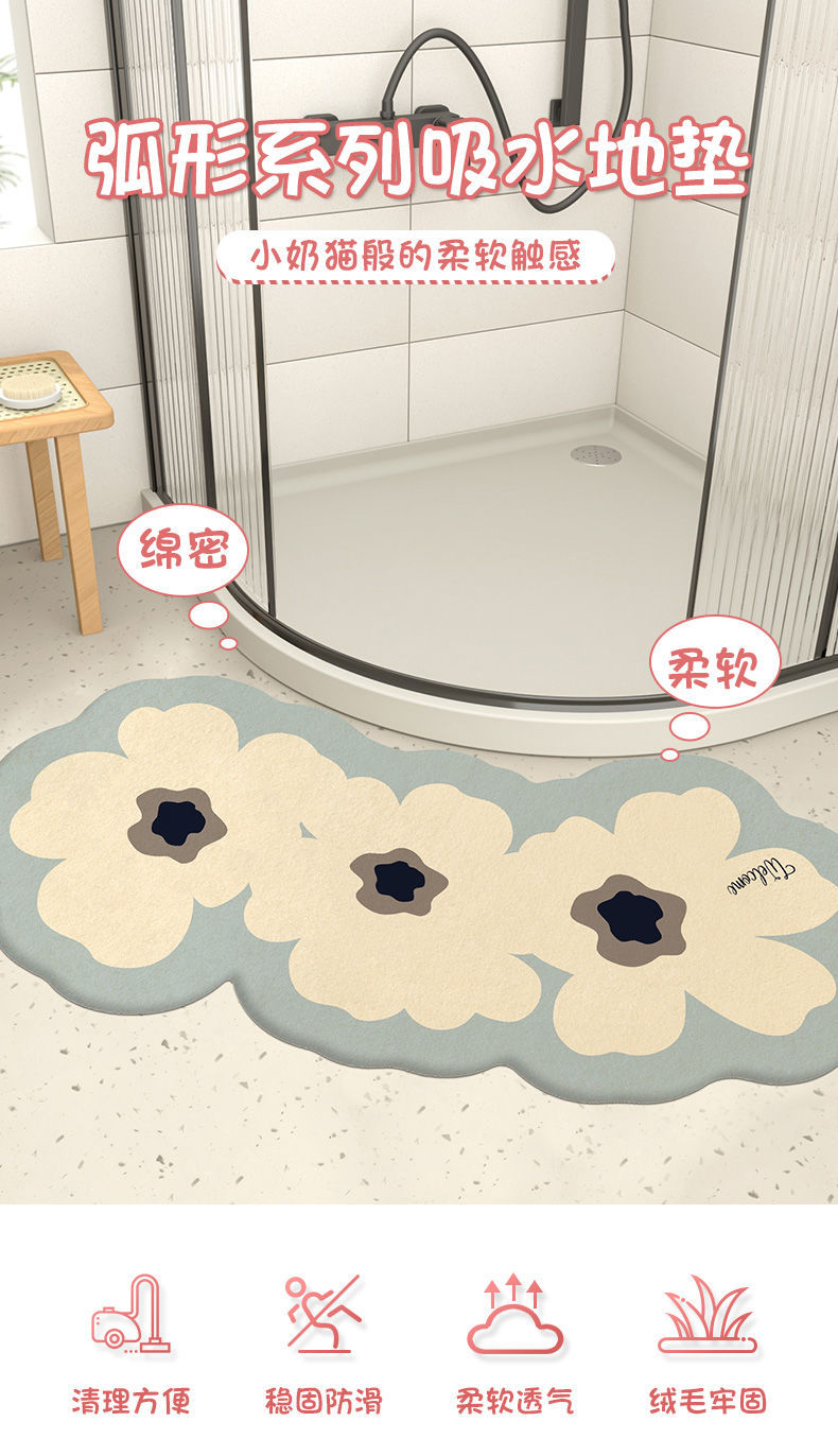 욕실 흡수성 미끄럼 방지 바닥 매트 곡선 발 매트 샤워 실 욕실 문 깔개 화장실 문 매트스토어 가기