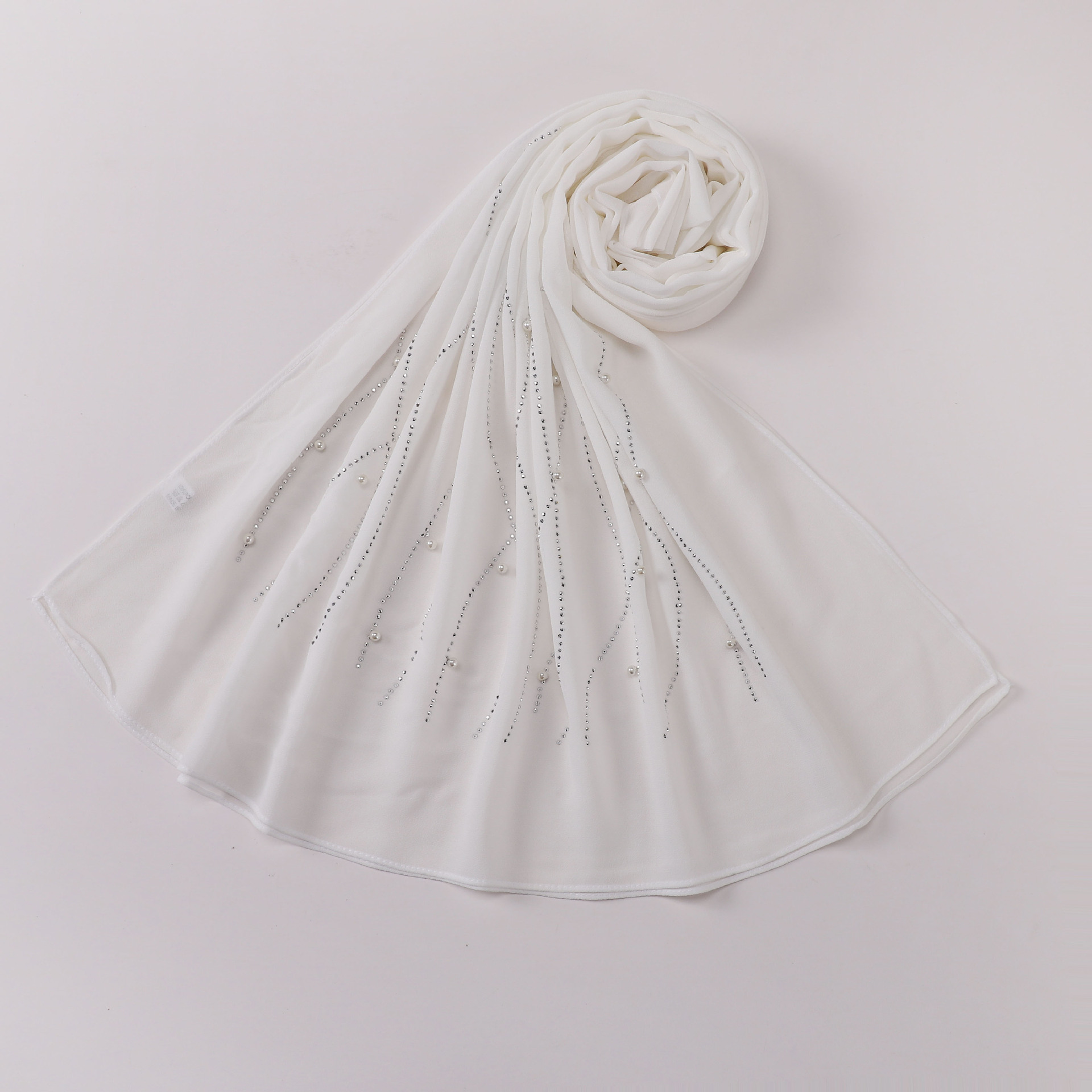 새로운 75D 진주 쉬폰 롱 스카프 싱글 헤드 핫 드릴링 네일 비즈 스카프 후이 스카프 중동 아프리카 히잡스토어 가기