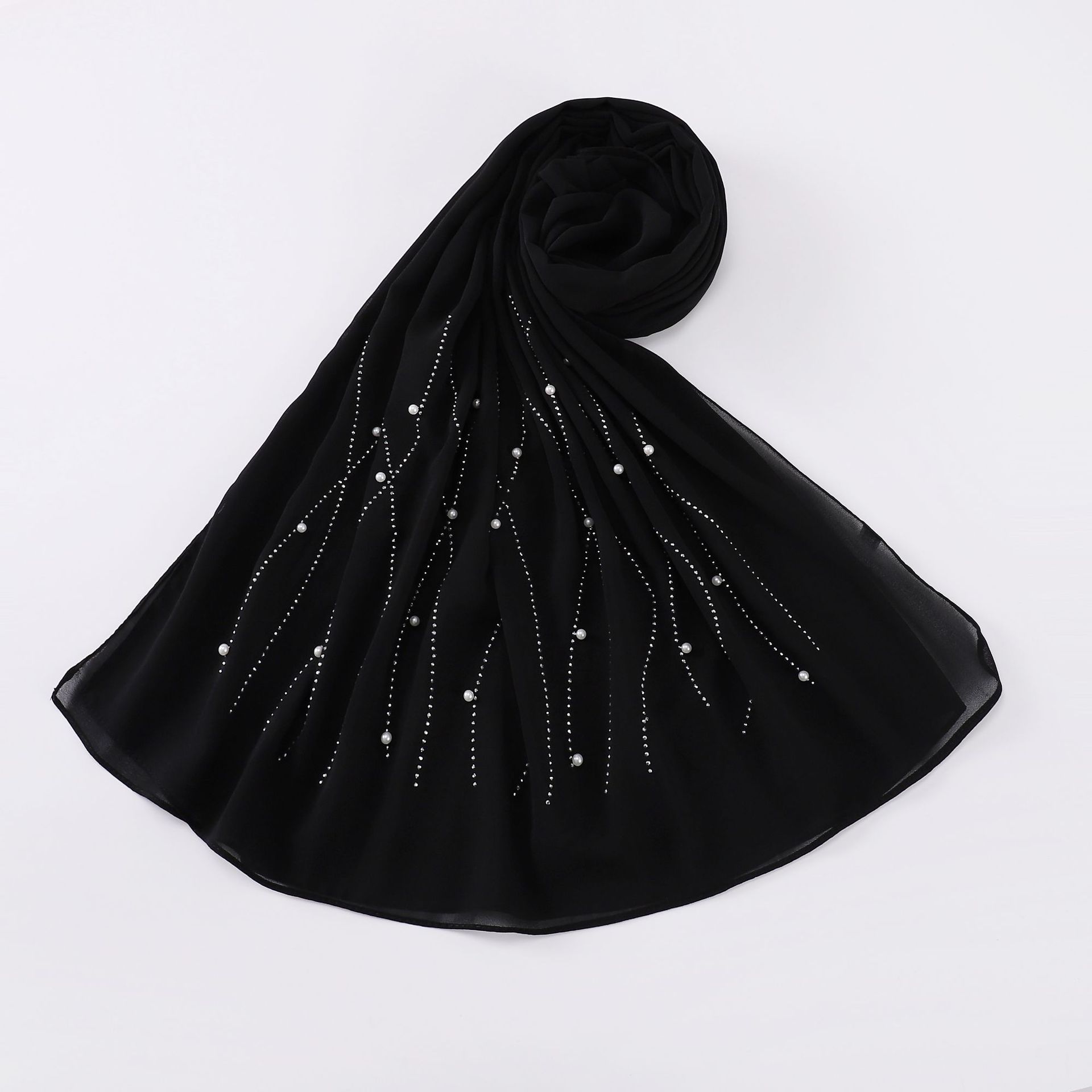 새로운 75D 진주 쉬폰 롱 스카프 싱글 헤드 핫 드릴링 네일 비즈 스카프 후이 스카프 중동 아프리카 히잡