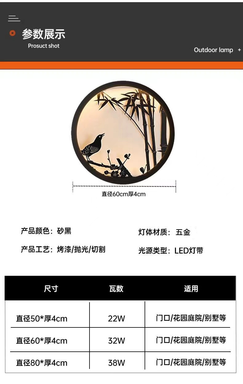 태양 광 야외 방수 벽 램프 새로운 중국 스타일 빌라 외벽 조경 마당 정원 조경 정원 램프 배경 벽